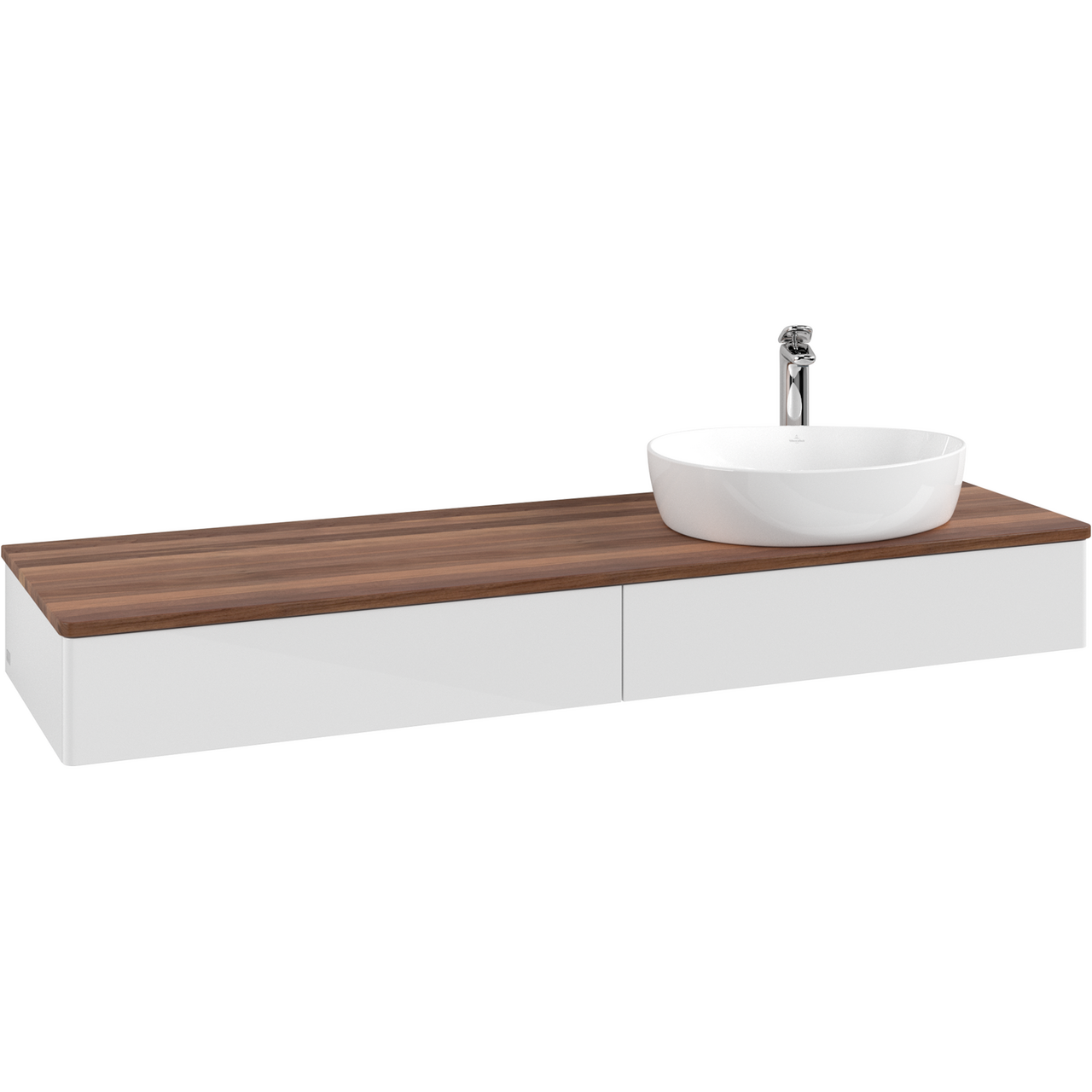 V&b antao servantskap 2 skuffer glatt 1600x190x500 høyre m/kranhull m/lys hvit/valnøtt