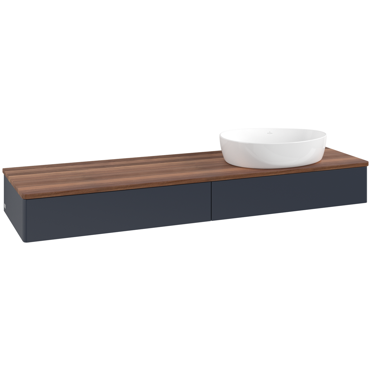 V&b antao servantskap 2 skuffer glatt 1600x190x500 høyre u/kranhull blå/valnøtt