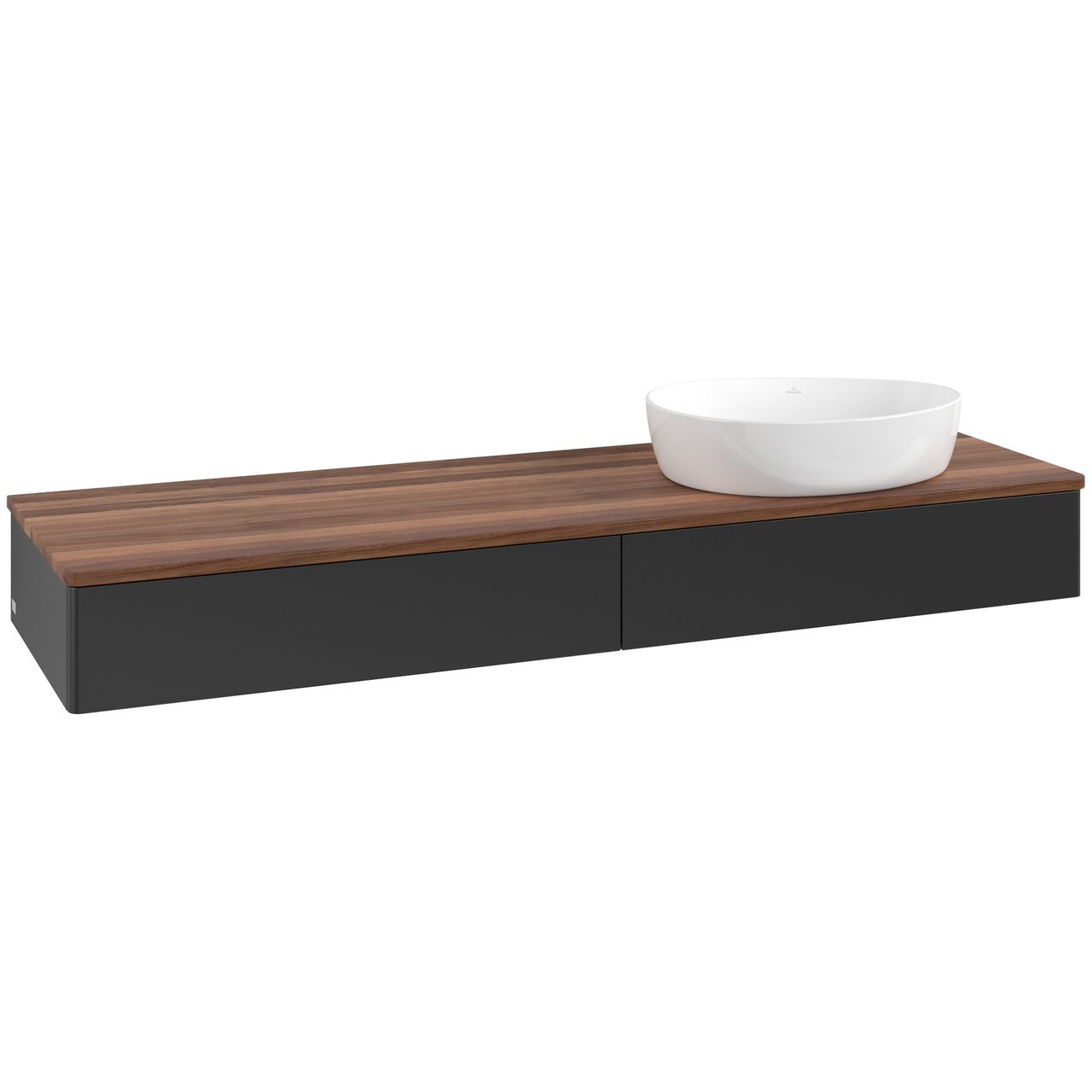 V&b antao servantskap 2 skuffer glatt 1600x190x500 høyre u/kranhull matt sort/valnøtt