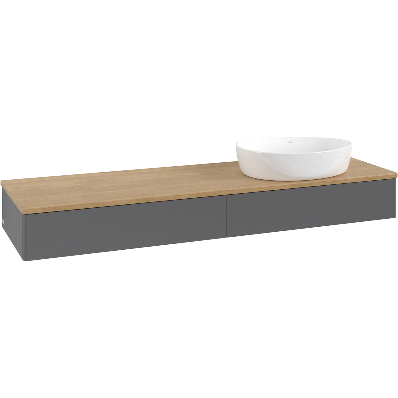 V&b antao servantskap 2 skuffer glatt 1600x190x500 høyre u/kranhull m/lys antrasitt/eik