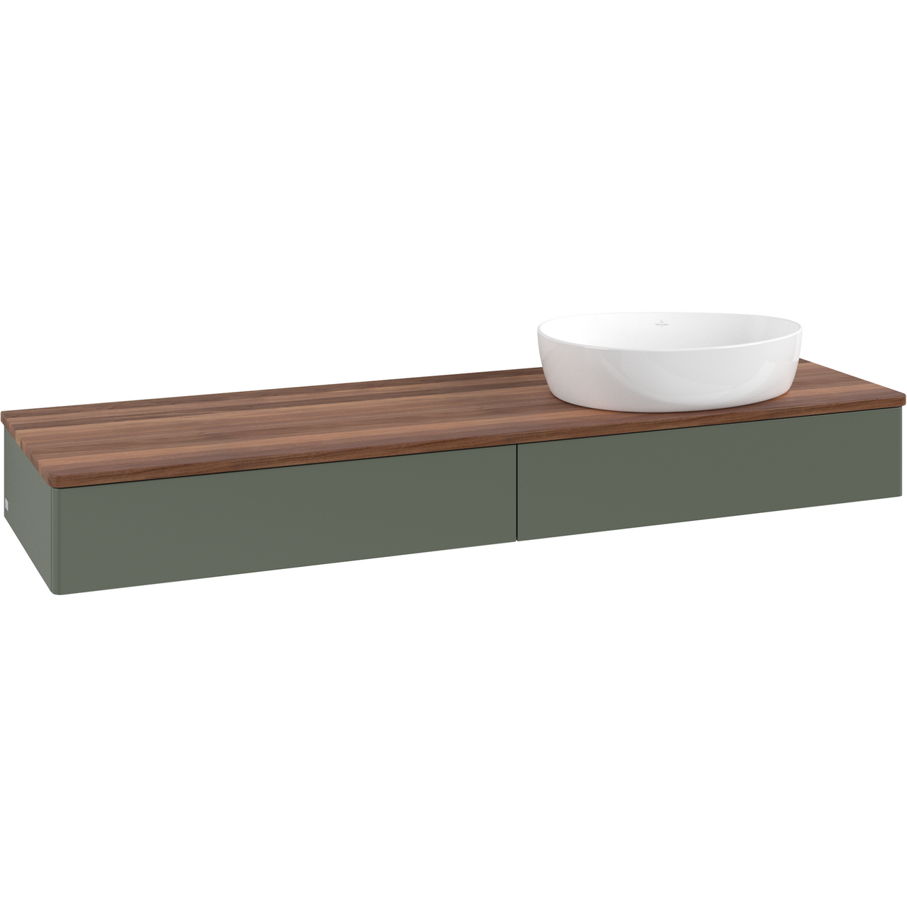 V&b antao servantskap 2 skuffer glatt 1600x190x500 høyre u/kranhull m/lys grønn/valnøtt
