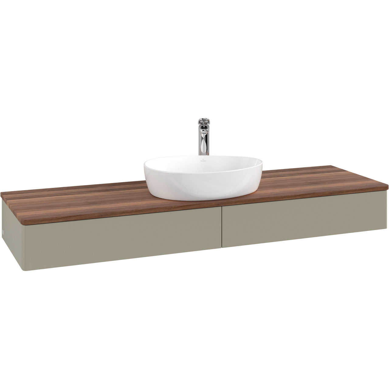 V&b antao servantskap 2 skuffer glatt 1600x190x500 m/kranhull m/lys stengrå/valnøtt
