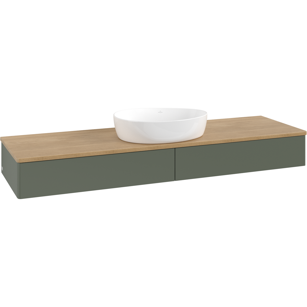 V&b antao servantskap 2 skuffer glatt 1600x190x500 u/kranhull m/lys grønn/eik