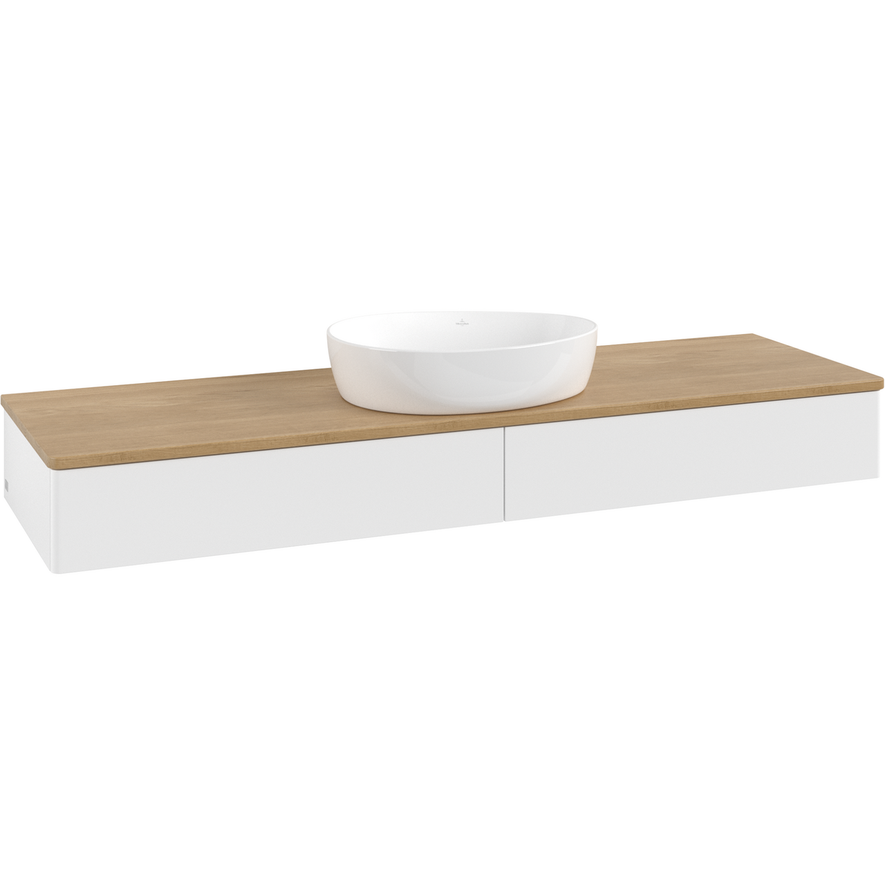 V&b antao servantskap 2 skuffer glatt 1600x190x500 u/kranhull m/lys matt hvit/eik