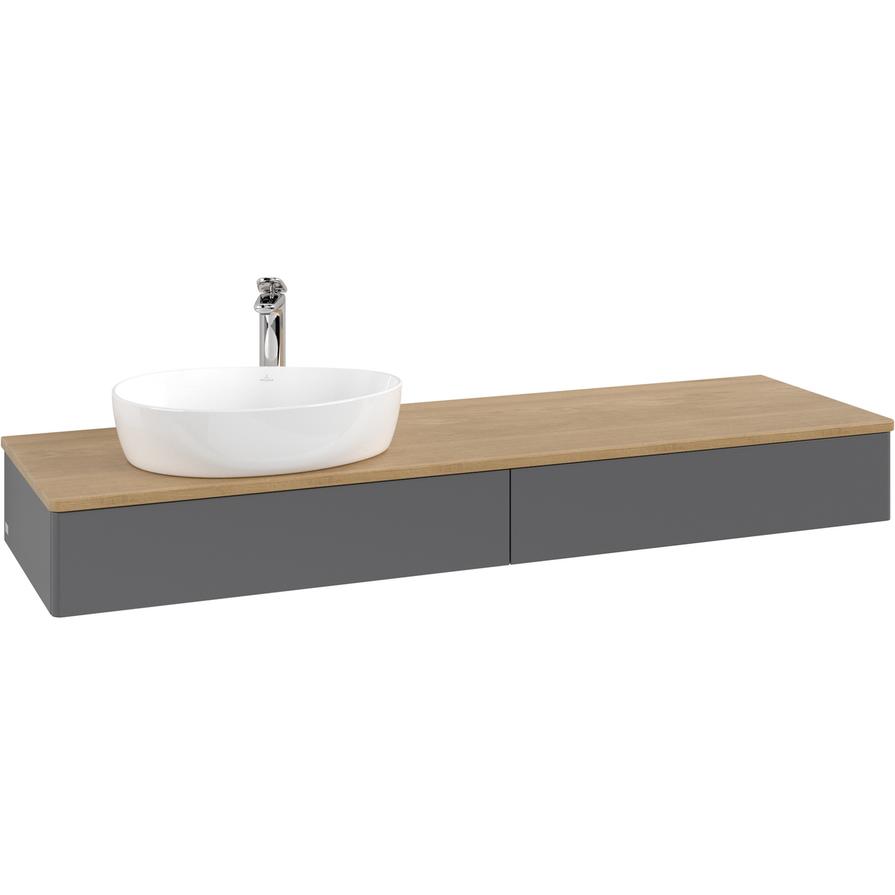V&B ANTAO SERVANTSKAP 2 SKUFFER GLATT 1600X190X500 VENSTRE M/KRANHULL M/LYS ANTRASITT/EIK