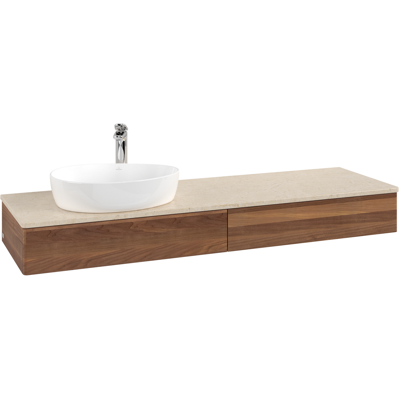 V&b antao servantskap 2 skuffer glatt 1600x190x500 venstre m/kranhull m/lys valnøtt/créme