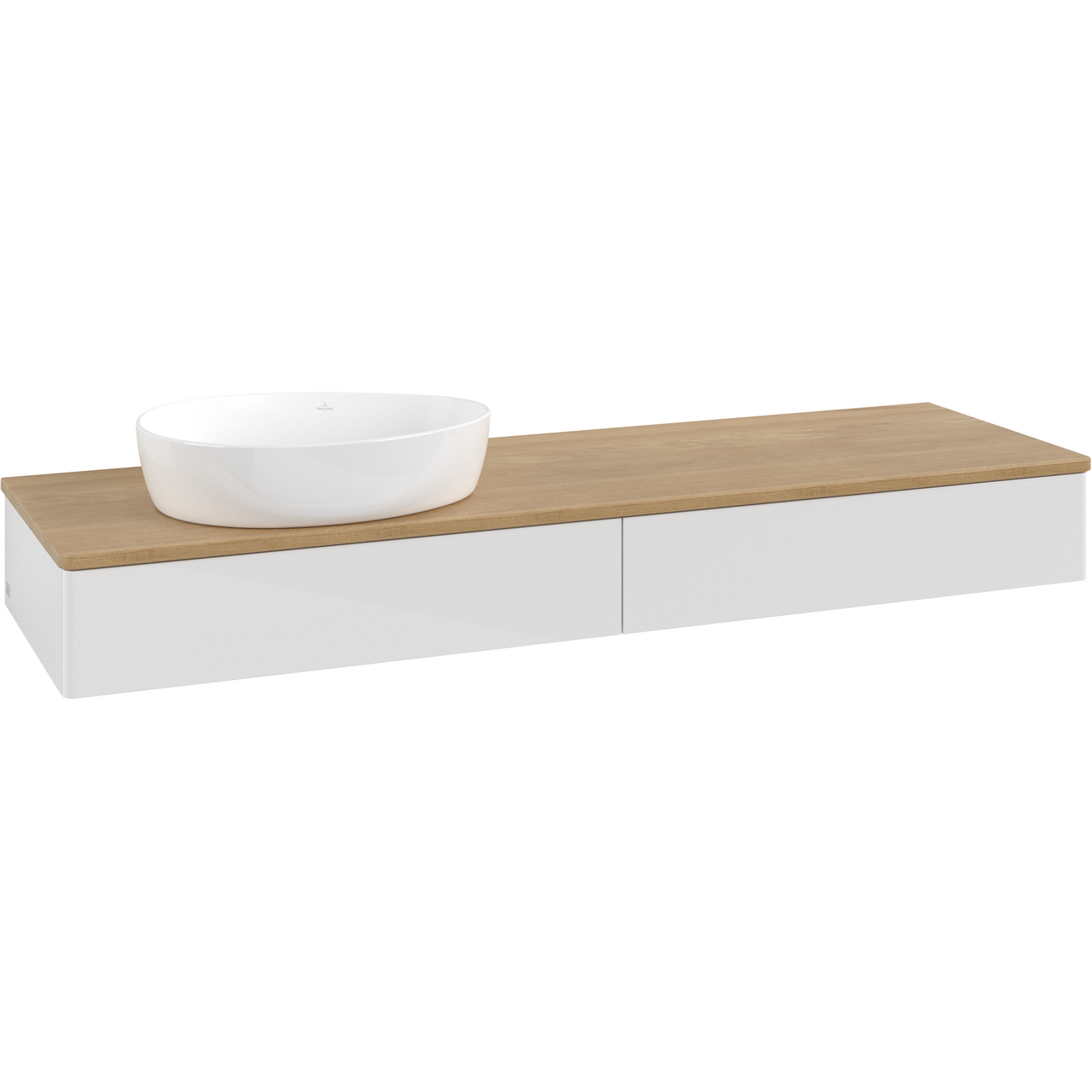 V&b antao servantskap 2 skuffer glatt 1600x190x500 venstre u/kranhull m/lys hvit/eik