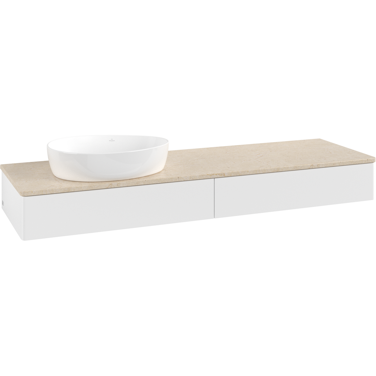 V&B ANTAO SERVANTSKAP 2 SKUFFER GLATT 1600X190X500 VENSTRE U/KRANHULL M/LYS MATT HVIT/CRÉME