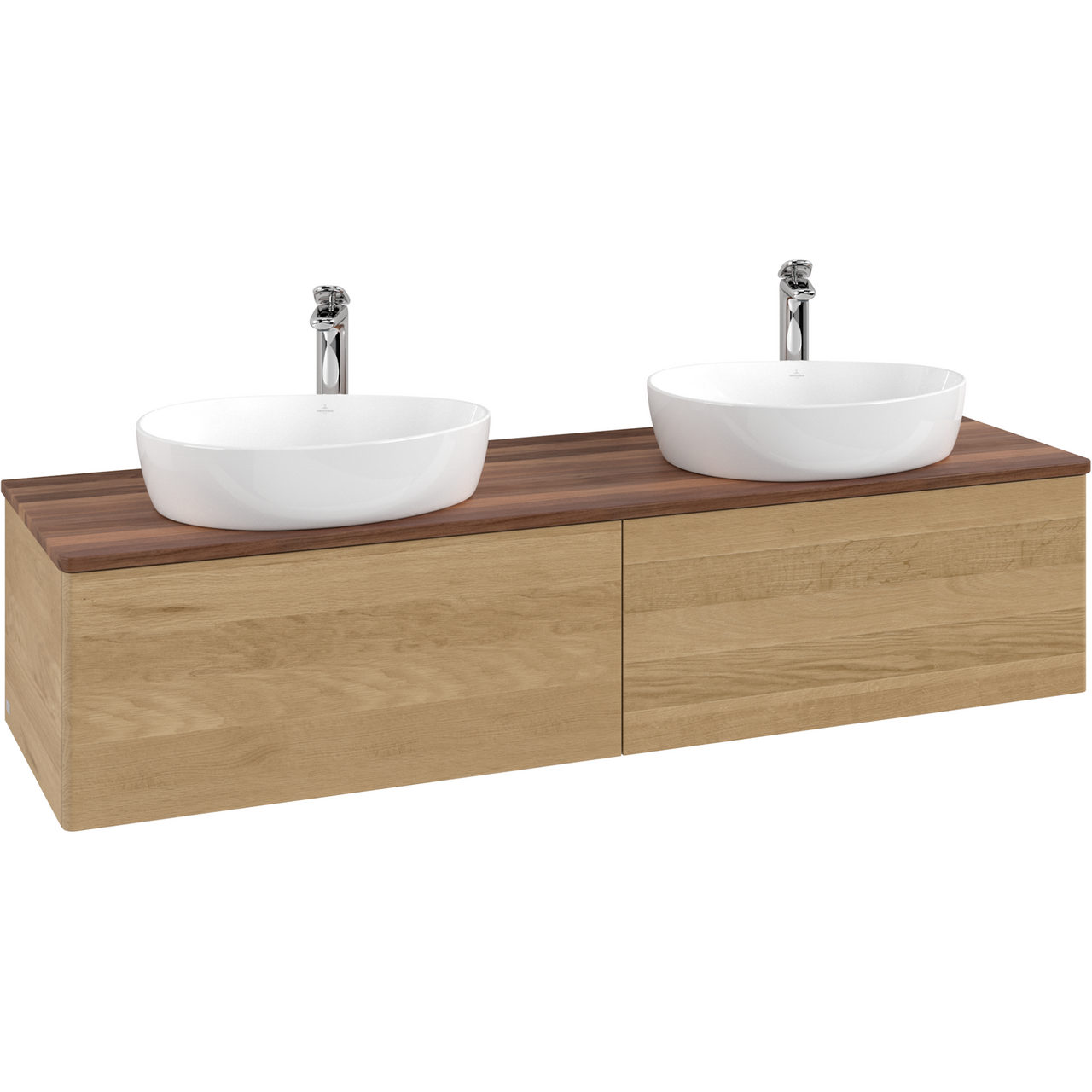 V&b antao servantskap 2 skuffer glatt 1600x360x500 for 2 serv. m/kranhull m/lys eik/valnøtt