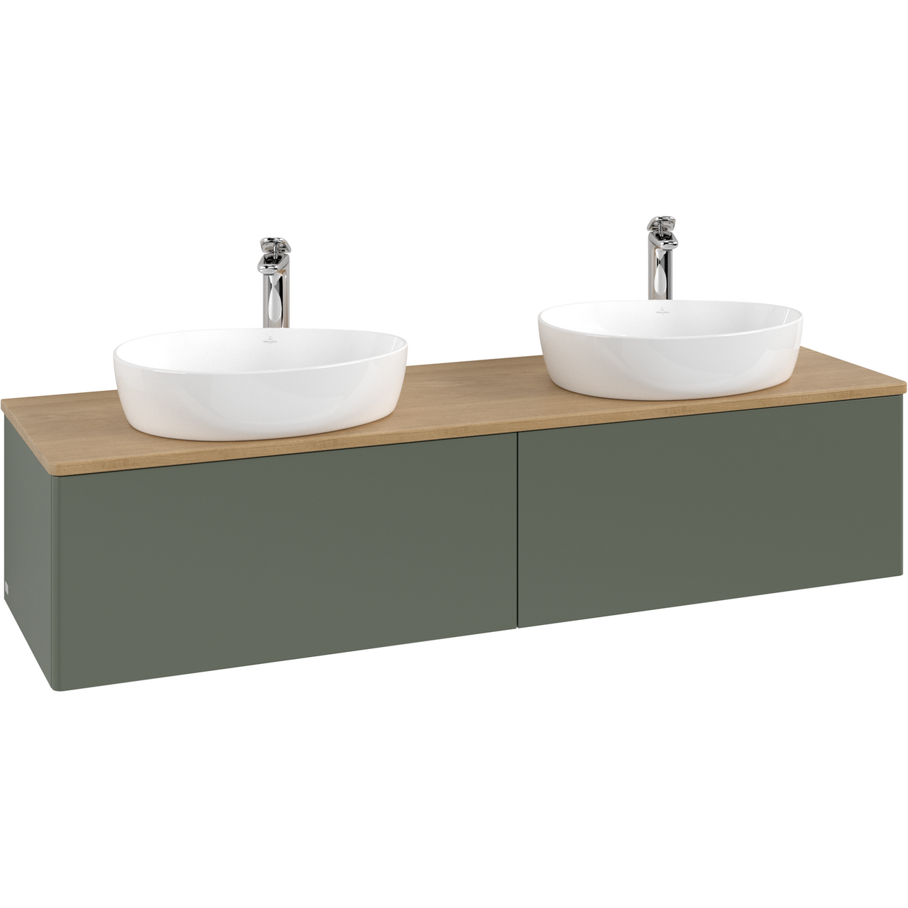 V&b antao servantskap 2 skuffer glatt 1600x360x500 for 2 serv. m/kranhull m/lys grønn/eik