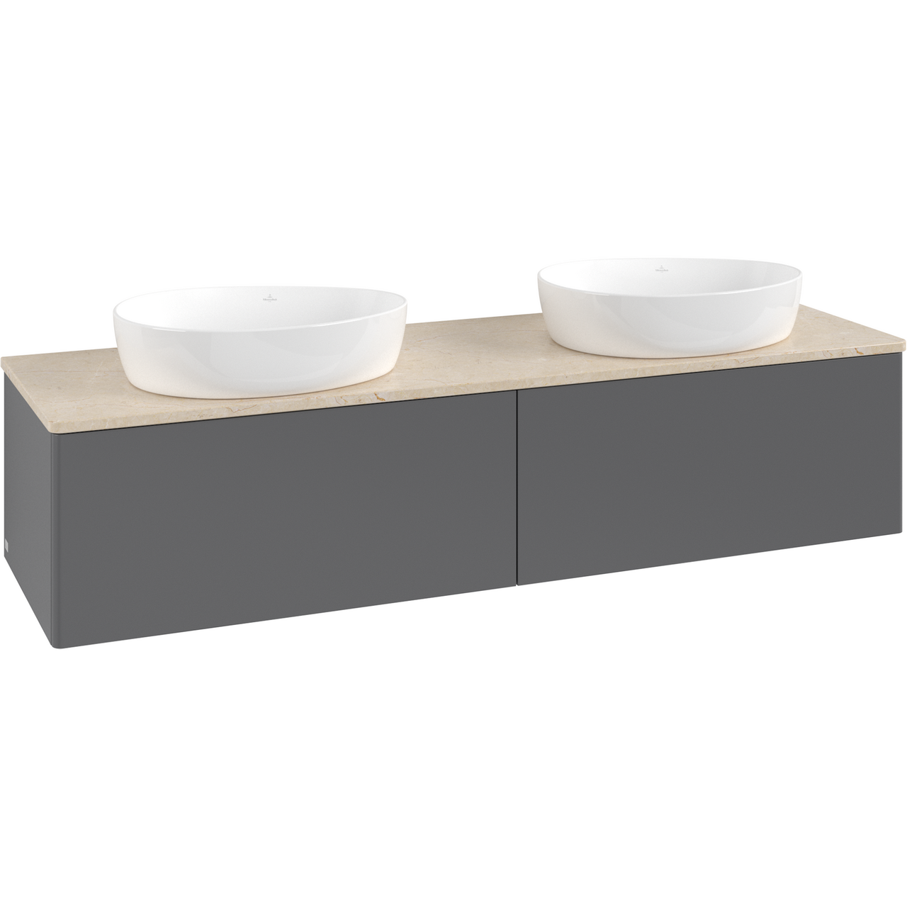 V&B ANTAO SERVANTSKAP 2 SKUFFER GLATT 1600X360X500 FOR 2 SERV. U/KRANHULL ANTRASITT/CRÉME