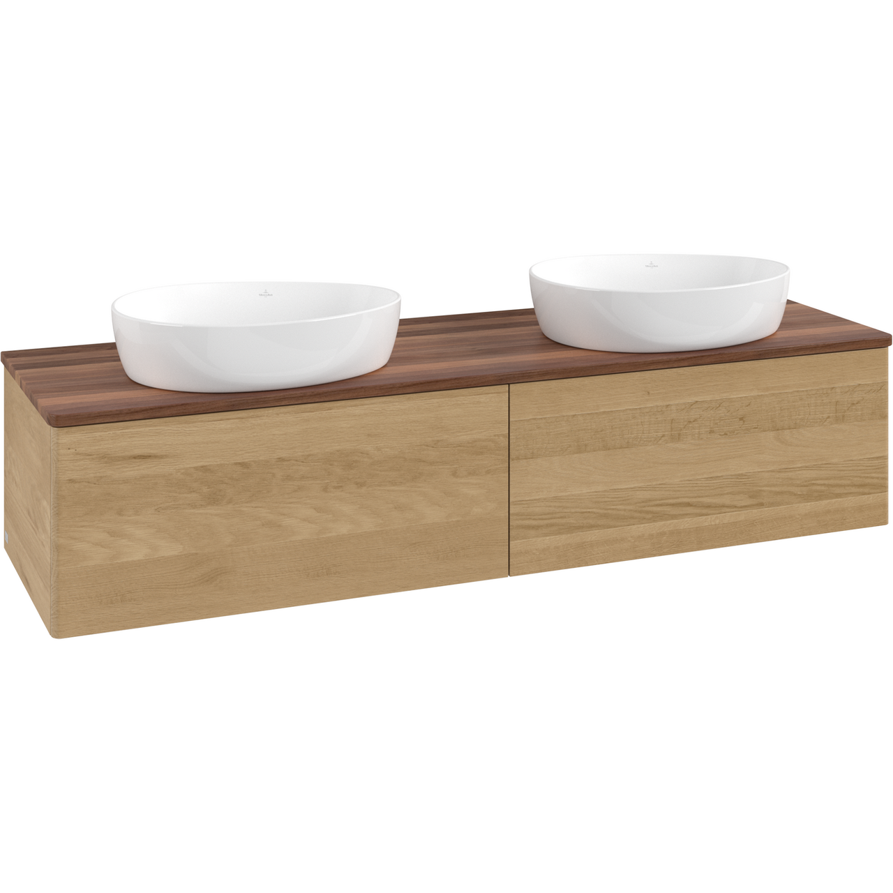 V&b antao servantskap 2 skuffer glatt 1600x360x500 for 2 serv. u/kranhull m/lys eik/valnøtt