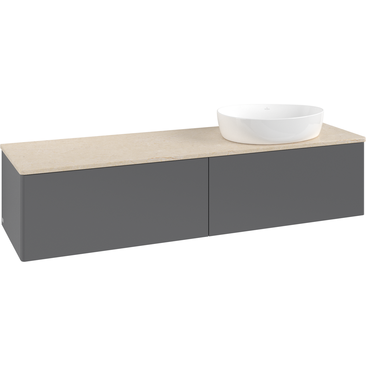 V&B ANTAO SERVANTSKAP 2 SKUFFER GLATT 1600X360X500 HØYRE U/KRANHULL M/LYS ANTRASITT/CRÉME