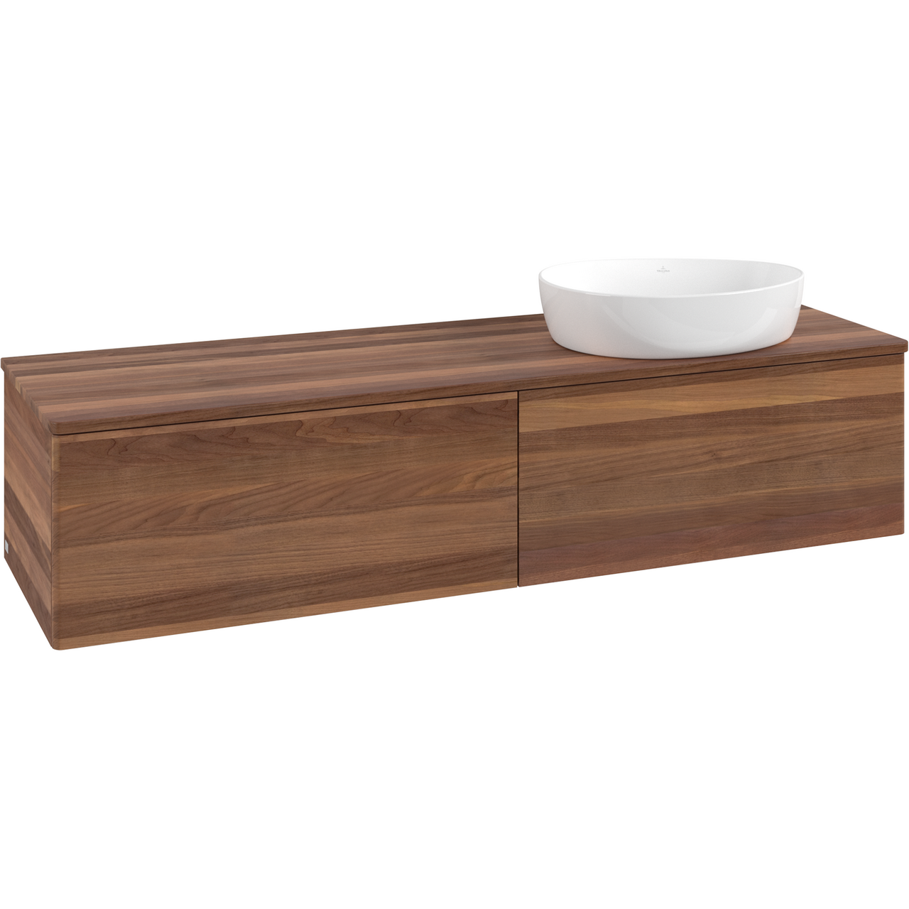 V&b antao servantskap 2 skuffer glatt 1600x360x500 høyre u/kranhull m/lys valnøtt/valnøtt