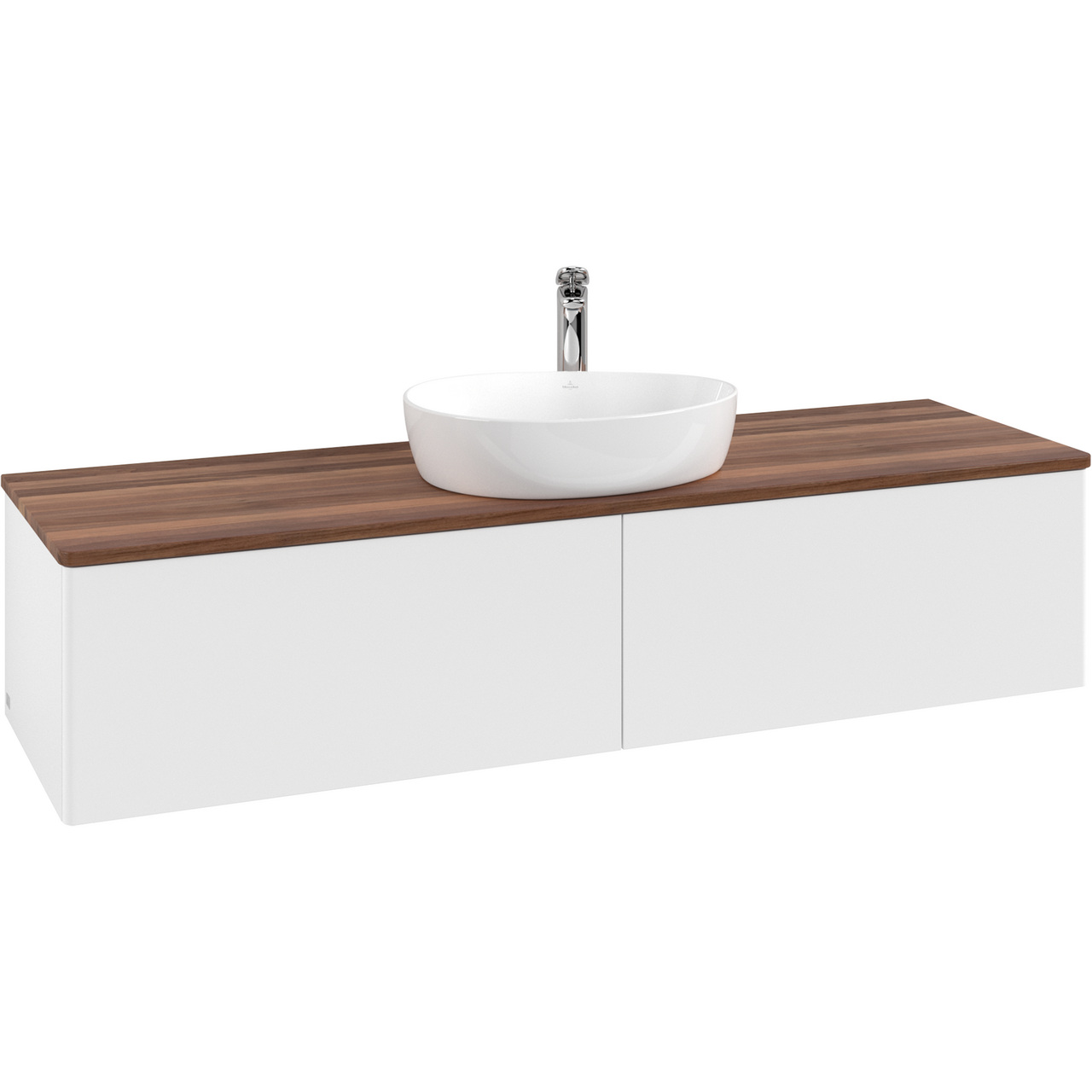 V&b antao servantskap 2 skuffer glatt 1600x360x500 m/kranhull m/lys matt hvit/valnøtt