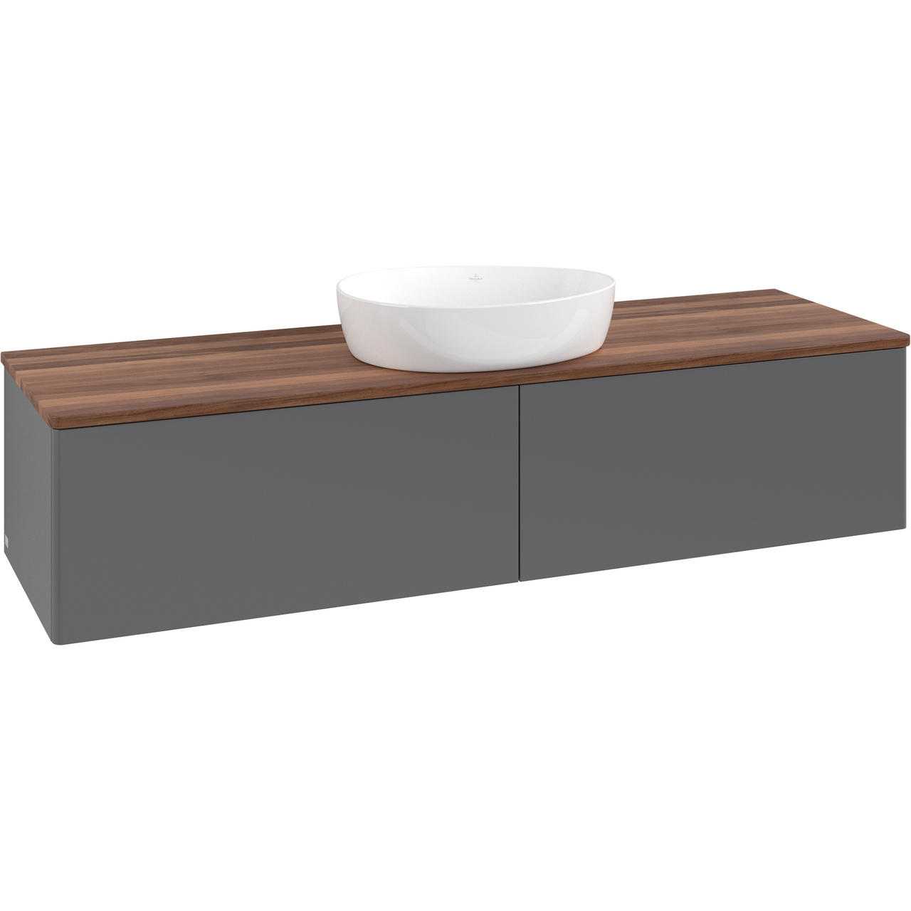 V&b antao servantskap 2 skuffer glatt 1600x360x500 u/kranhull m/lys antrasitt/valnøtt