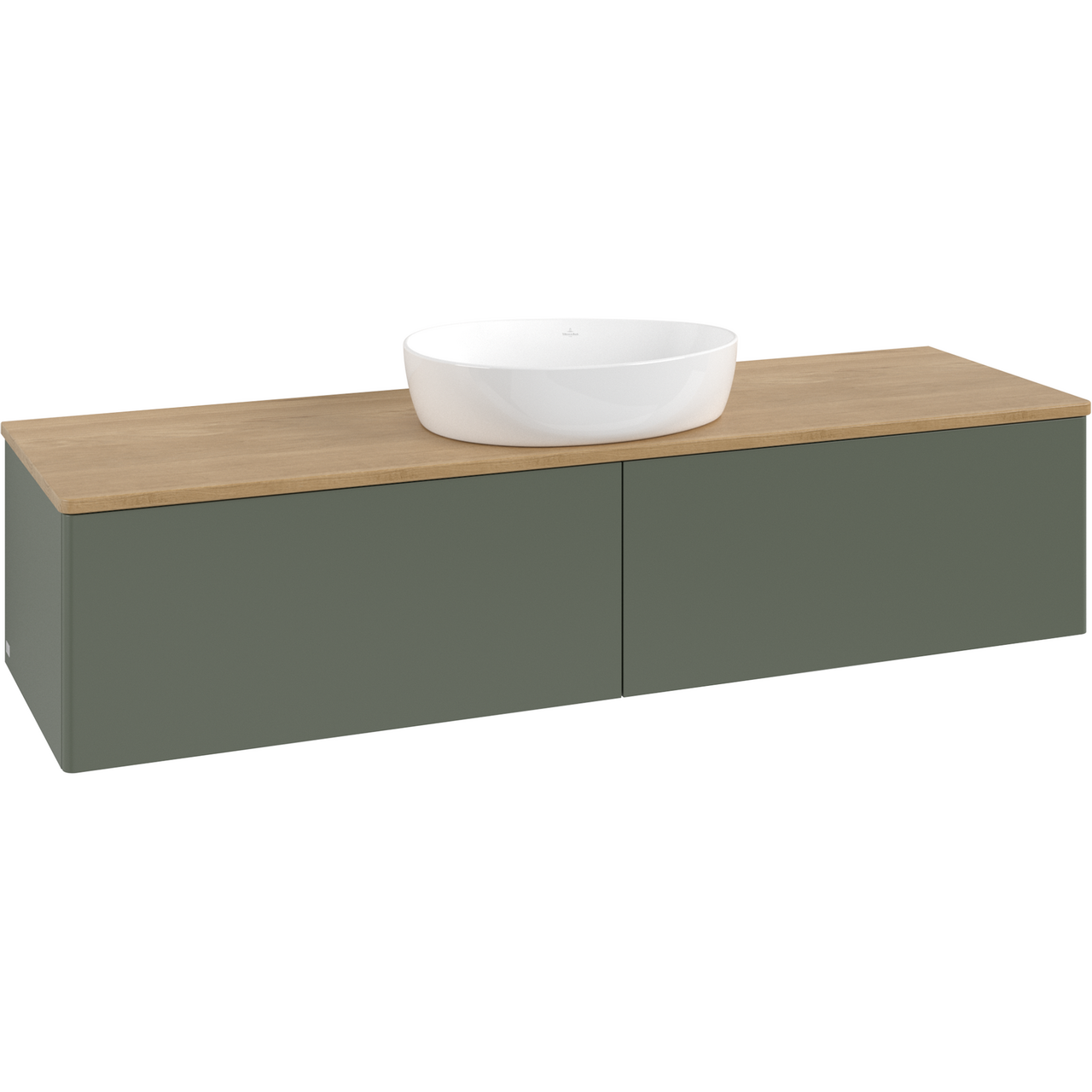 V&b antao servantskap 2 skuffer glatt 1600x360x500 u/kranhull m/lys grønn/eik