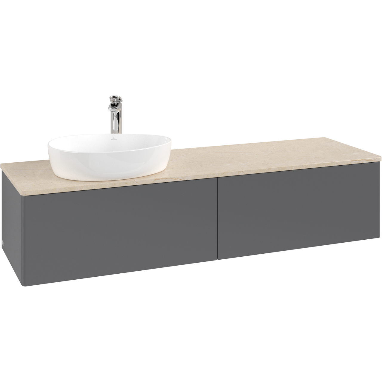 V&B ANTAO SERVANTSKAP 2 SKUFFER GLATT 1600X360X500 VENSTRE M/KRANHULL M/LYS ANTRASITT/CRÉME