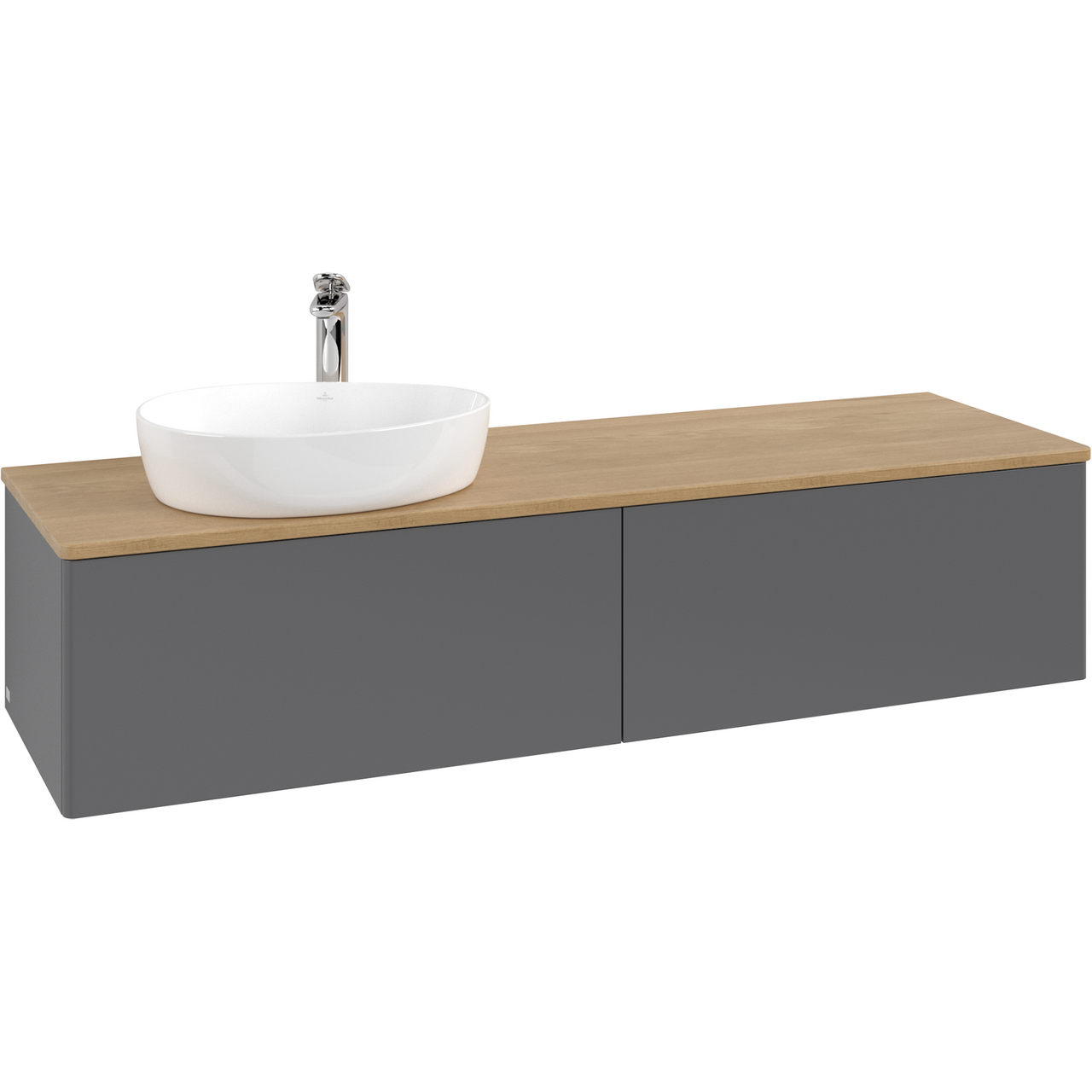 V&B ANTAO SERVANTSKAP 2 SKUFFER GLATT 1600X360X500 VENSTRE M/KRANHULL M/LYS ANTRASITT/EIK