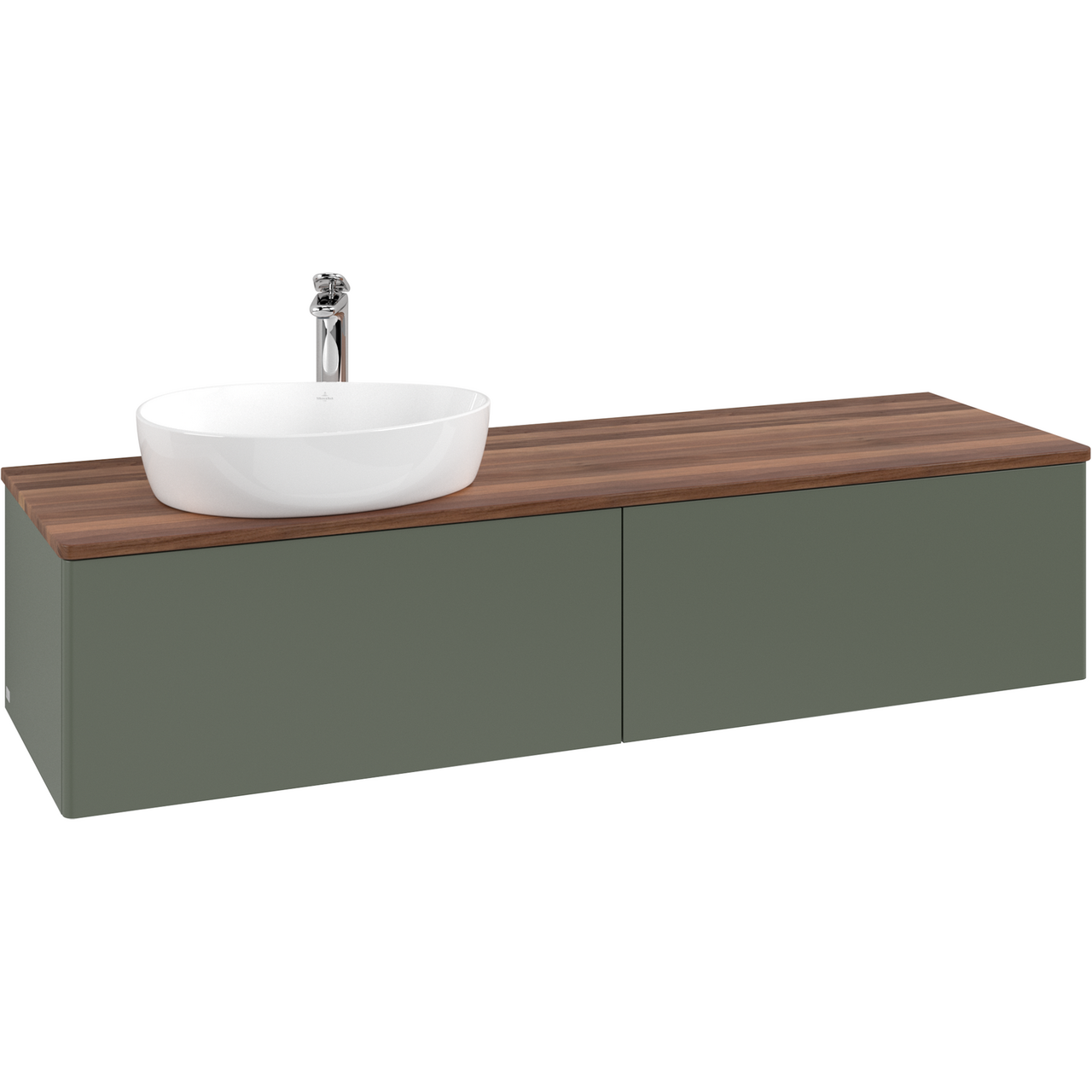 V&b antao servantskap 2 skuffer glatt 1600x360x500 venstre m/kranhull m/lys grønn/valnøtt