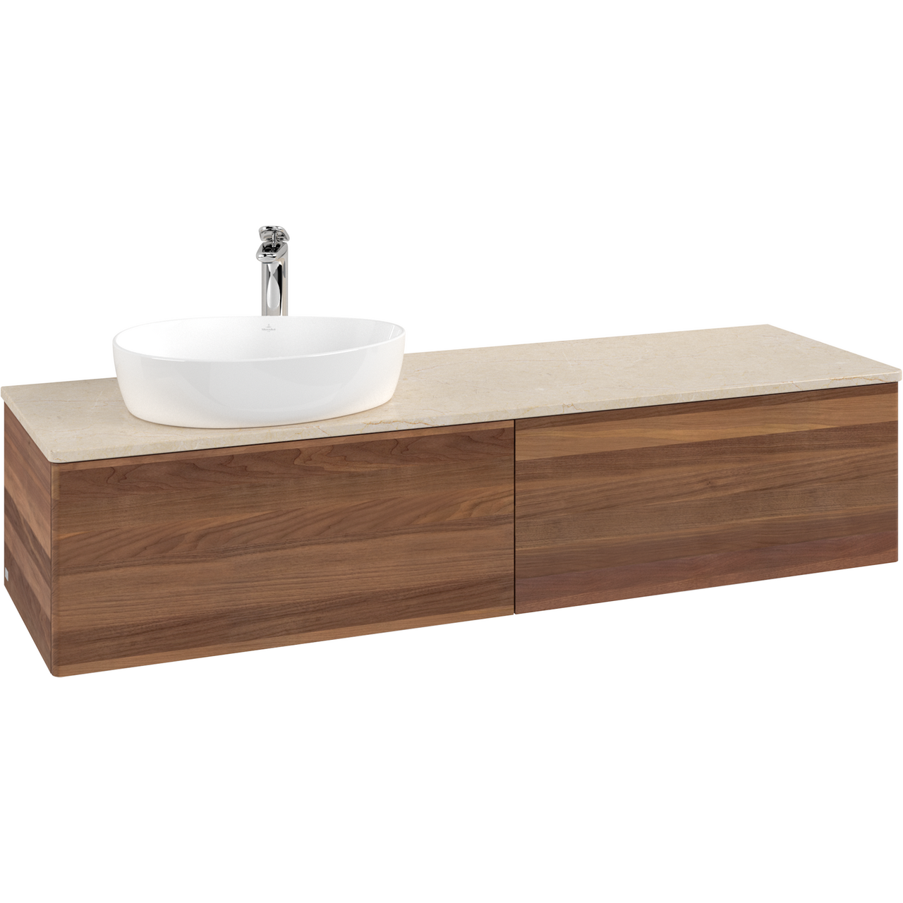 V&b antao servantskap 2 skuffer glatt 1600x360x500 venstre m/kranhull valnøtt/créme