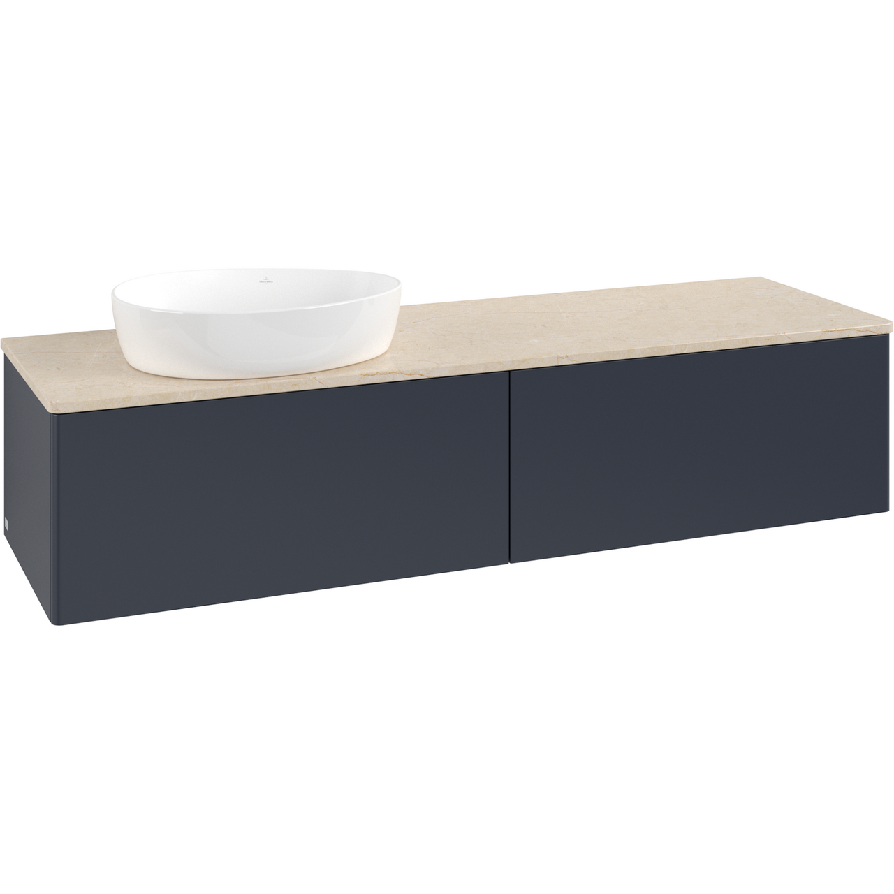 V&B ANTAO SERVANTSKAP 2 SKUFFER GLATT 1600X360X500 VENSTRE U/KRANHULL BLÅ/CRÉME