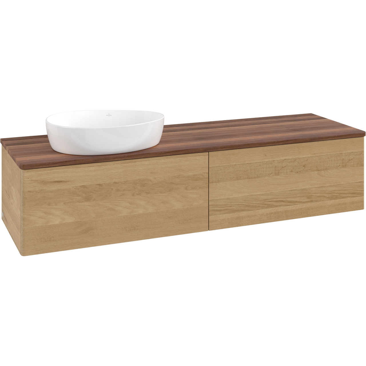 V&B ANTAO SERVANTSKAP 2 SKUFFER GLATT 1600X360X500 VENSTRE U/KRANHULL M/LYS EIK/VALNØTT