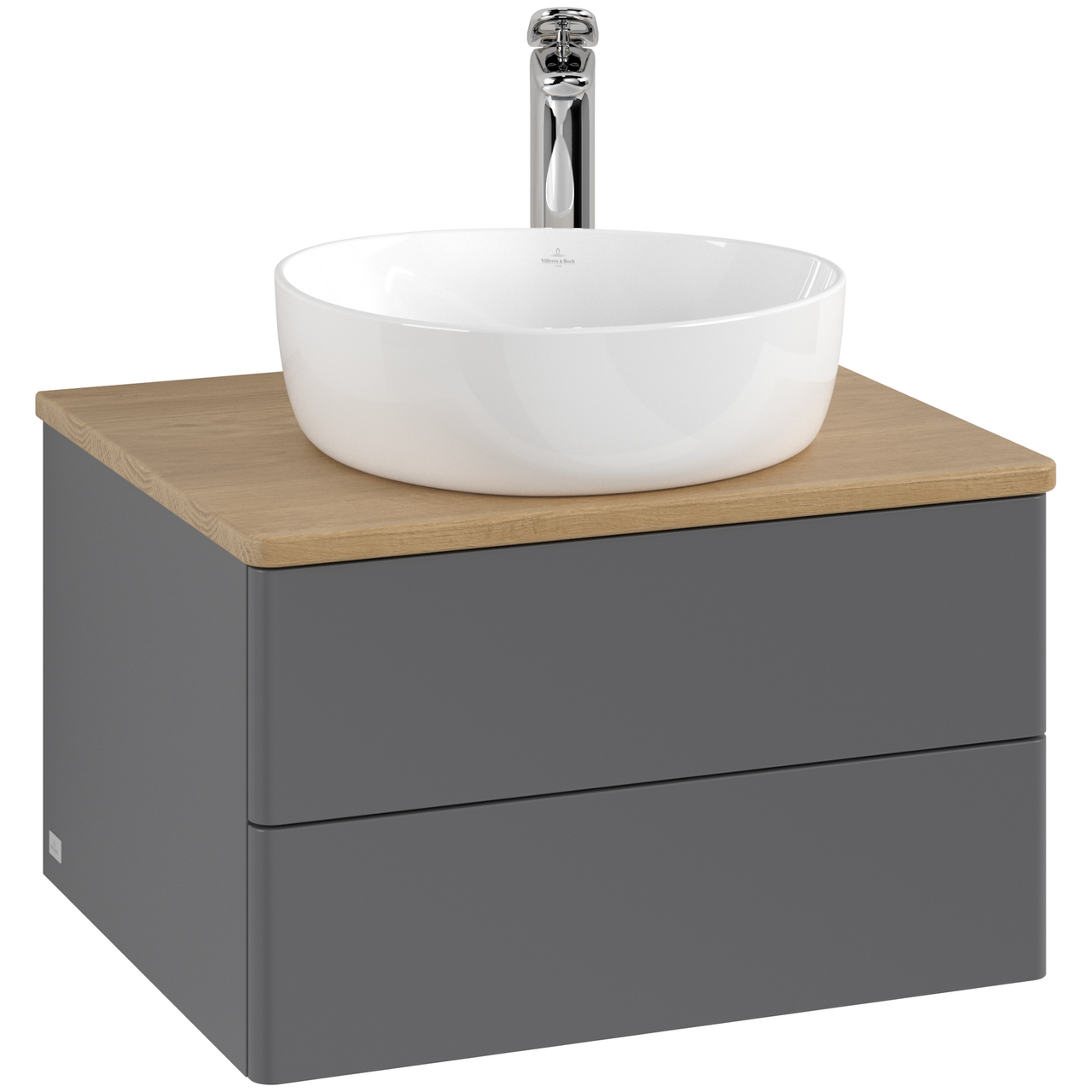 V&b antao servantskap 2 skuffer glatt 600x360x500 m/kranhull antrasitt/eik