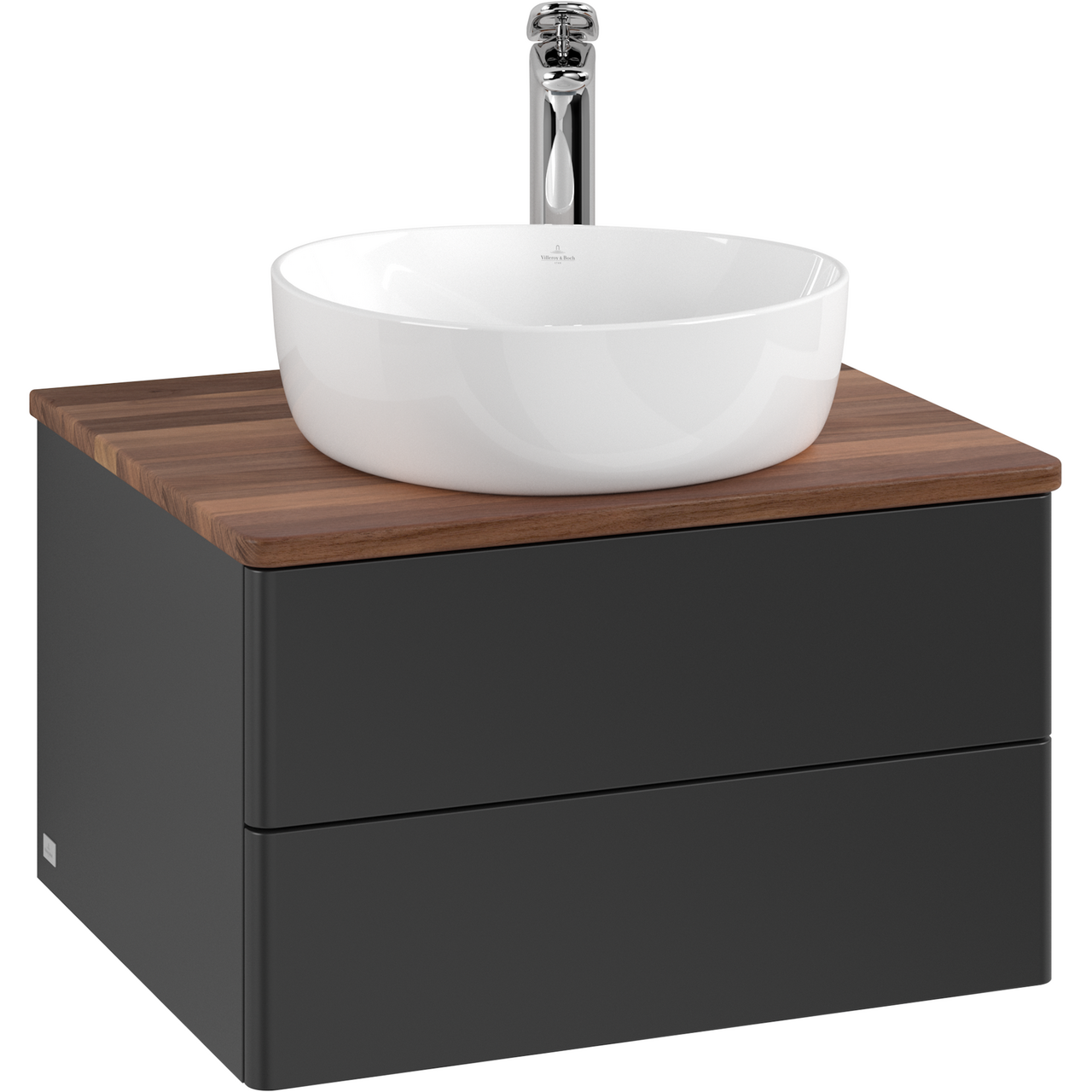 V&b antao servantskap 2 skuffer glatt 600x360x500 m/kranhull m/lys matt sort/valnøtt