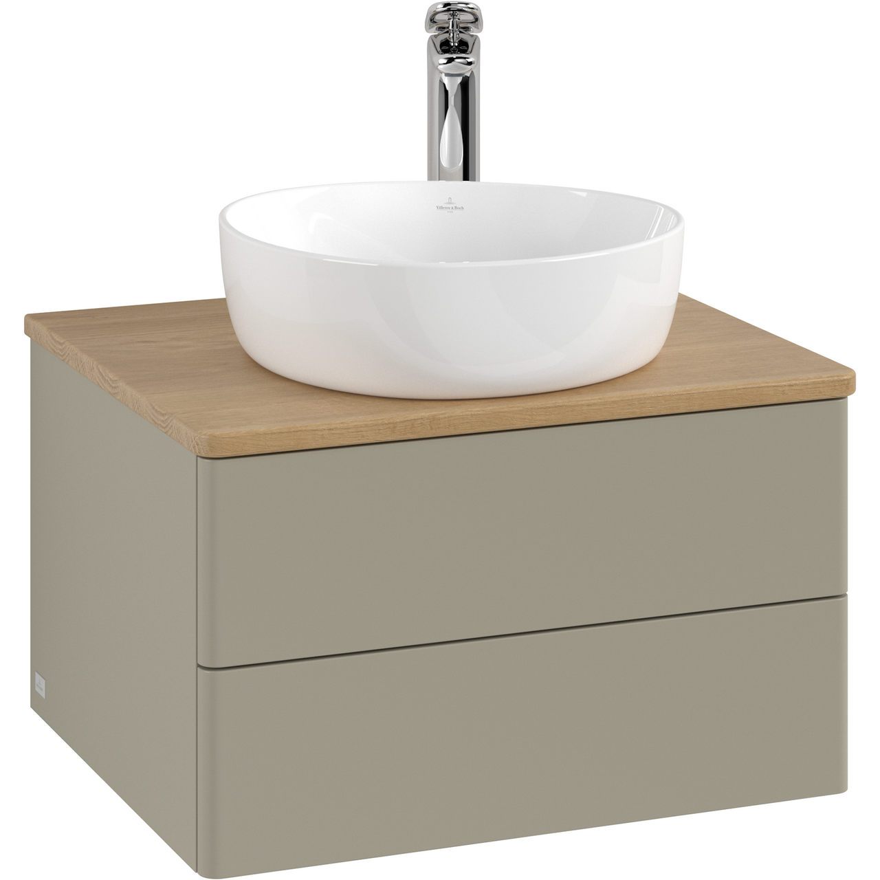 V&b antao servantskap 2 skuffer glatt 600x360x500 m/kranhull m/lys stengrå/eik