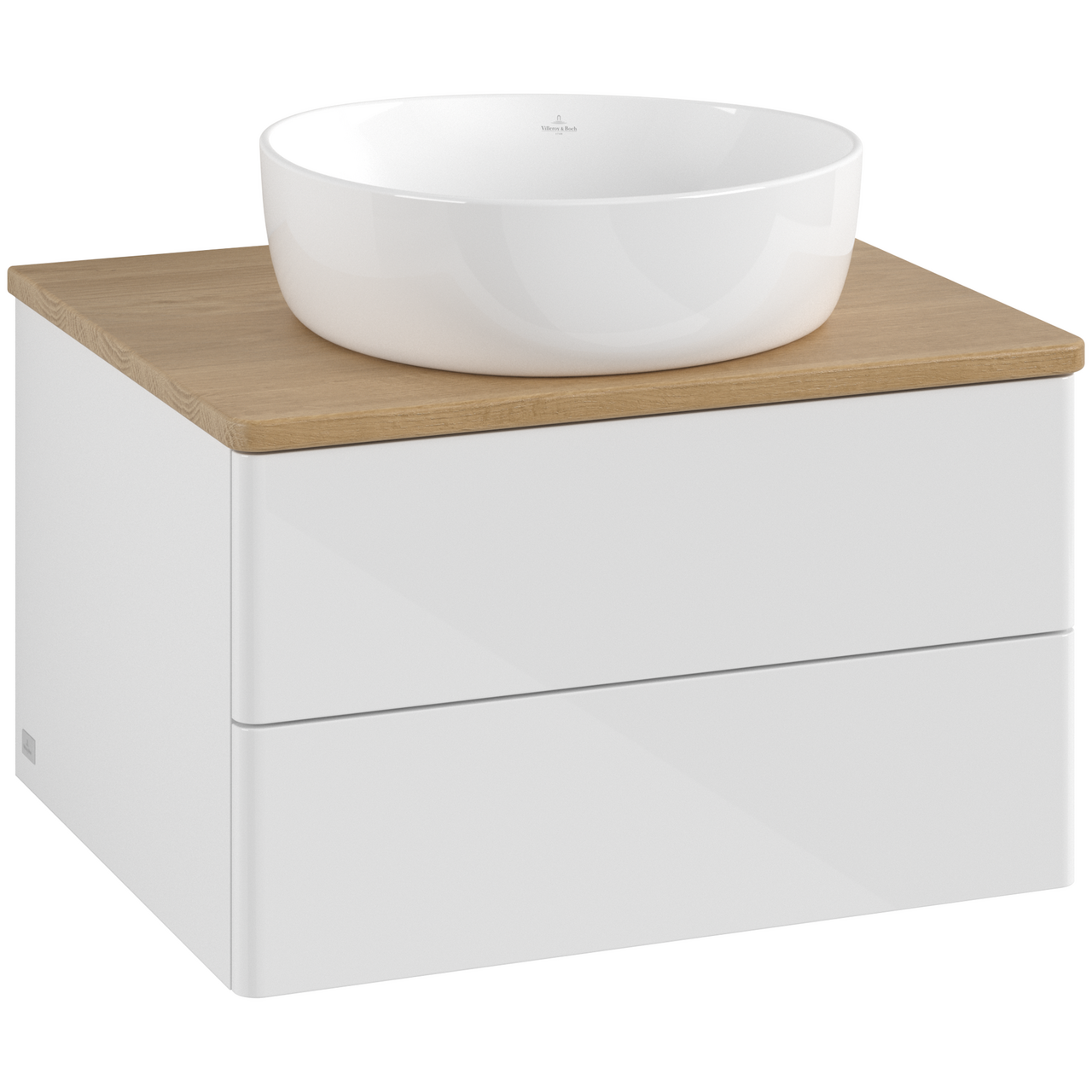 V&b antao servantskap 2 skuffer glatt 600x360x500 u/kranhull hvit/eik