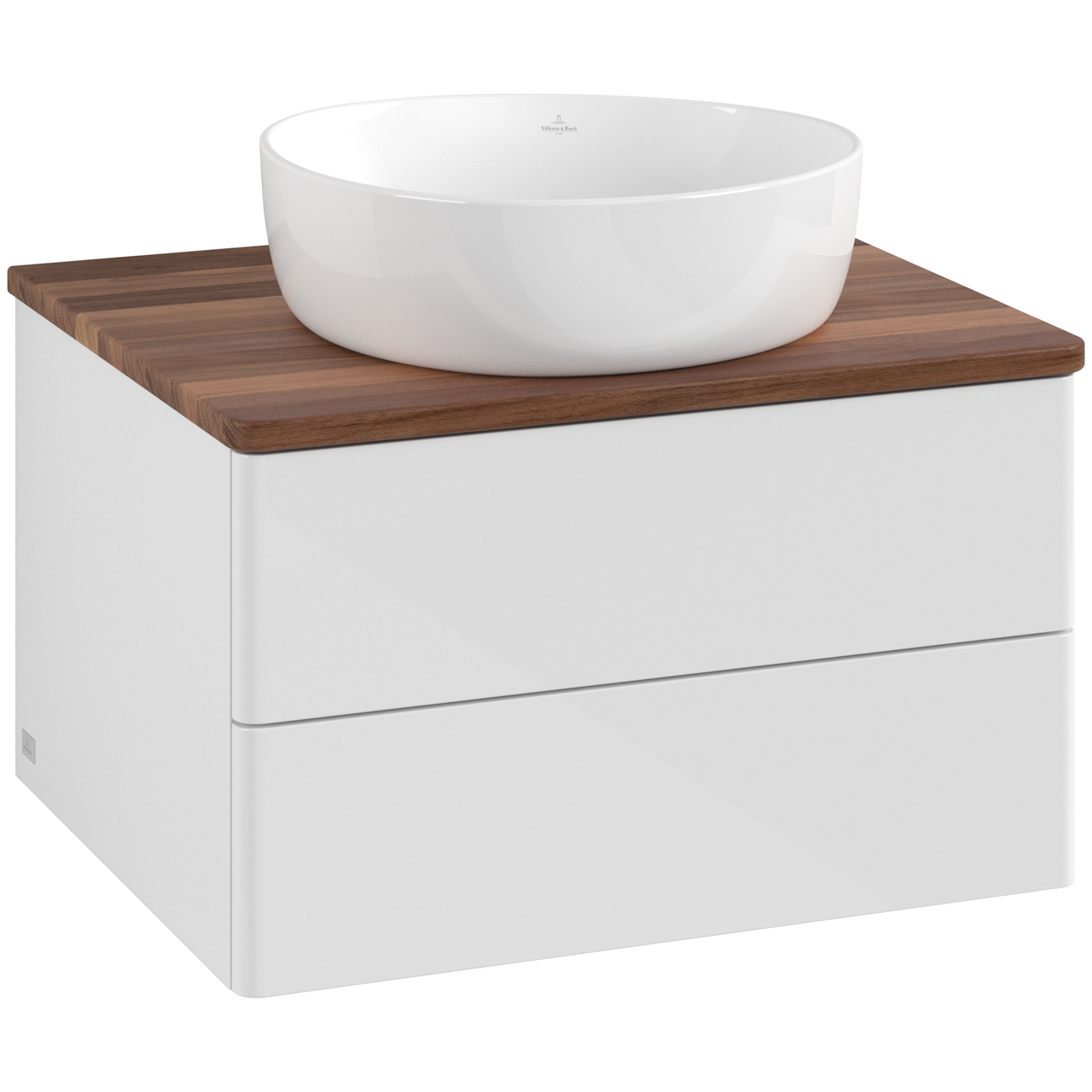V&b antao servantskap 2 skuffer glatt 600x360x500 u/kranhull hvit/valnøtt