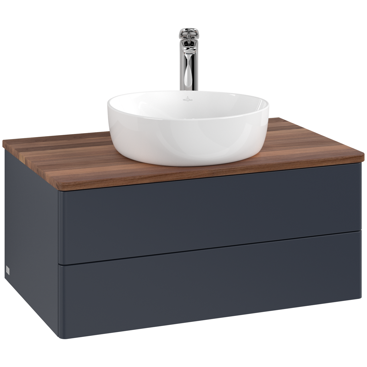V&b antao servantskap 2 skuffer glatt 800x360x500 m/kranhull blå/valnøtt