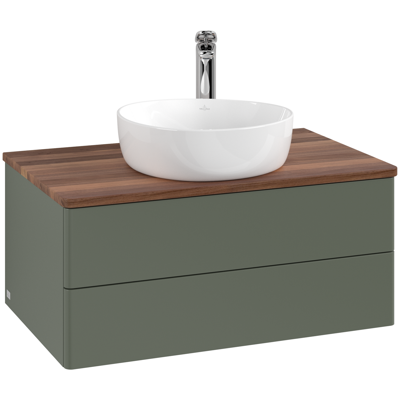 V&b antao servantskap 2 skuffer glatt 800x360x500 m/kranhull grønn/valnøtt