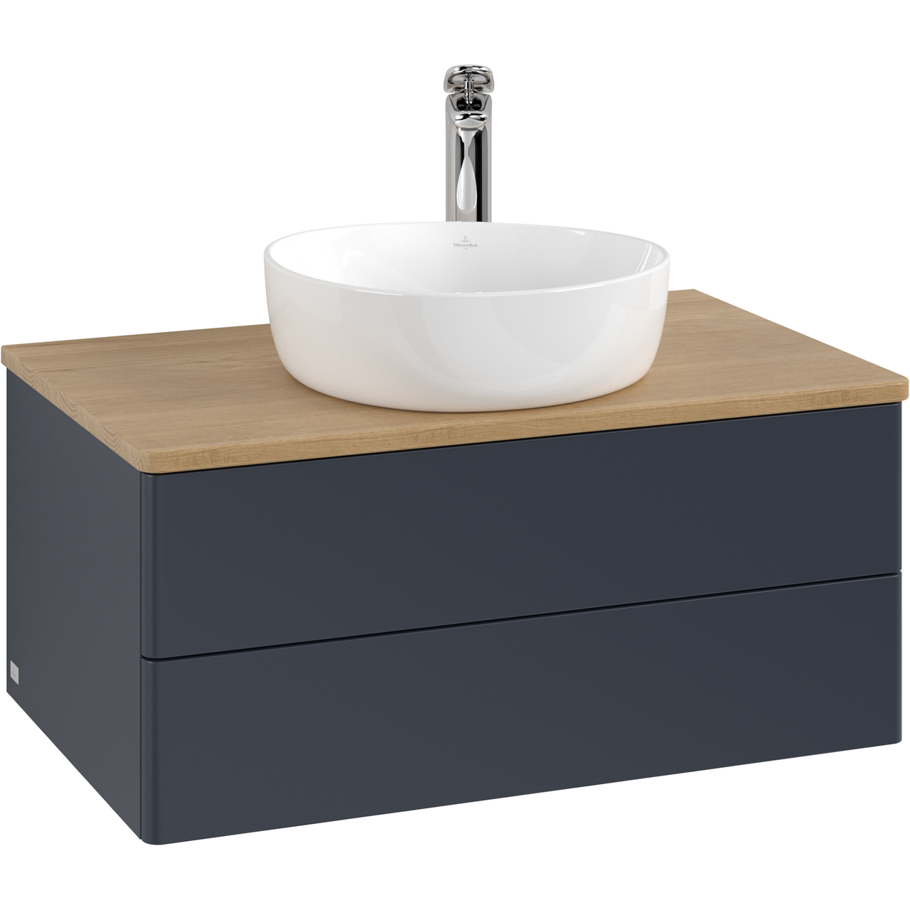 V&b antao servantskap 2 skuffer glatt 800x360x500 m/kranhull m/lys blå/eik