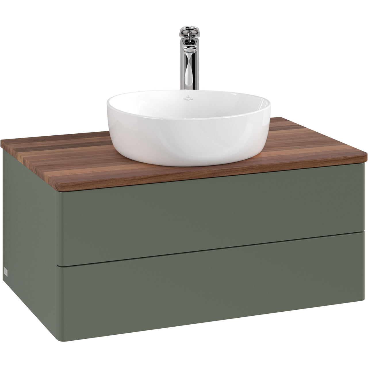 V&b antao servantskap 2 skuffer glatt 800x360x500 m/kranhull m/lys grønn/valnøtt