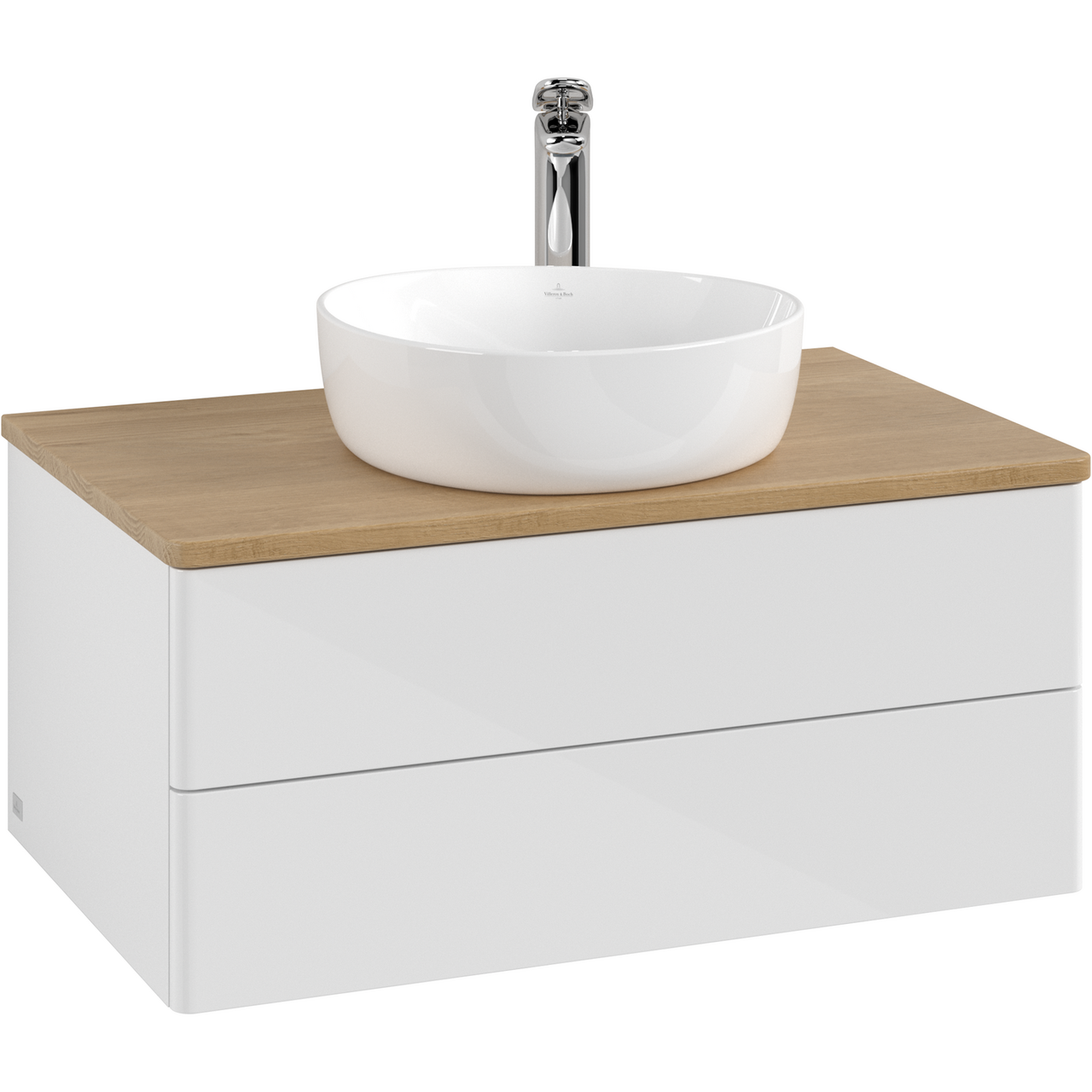 V&b antao servantskap 2 skuffer glatt 800x360x500 m/kranhull m/lys hvit/eik