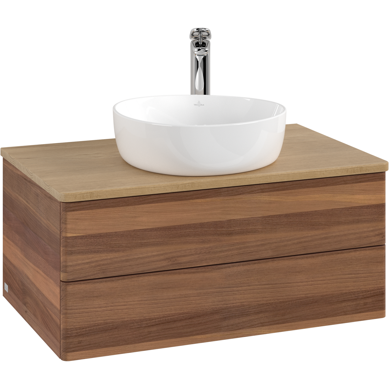 V&b antao servantskap 2 skuffer glatt 800x360x500 m/kranhull m/lys valnøtt/eik