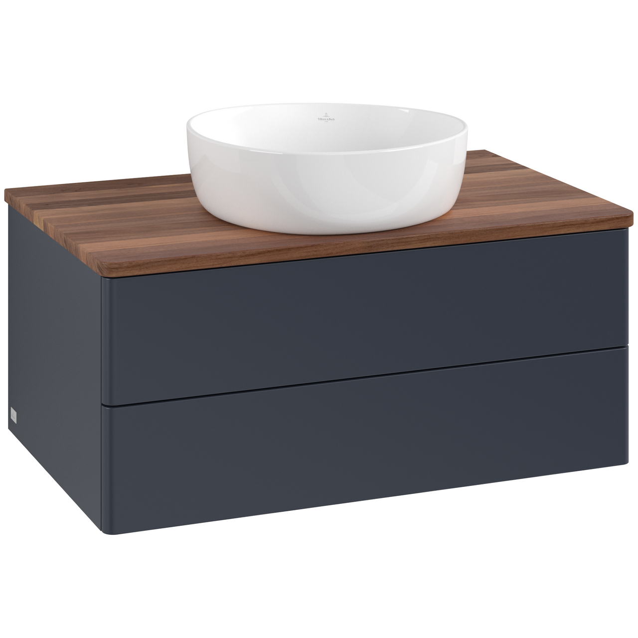 V&b antao servantskap 2 skuffer glatt 800x360x500 u/kranhull blå/valnøtt