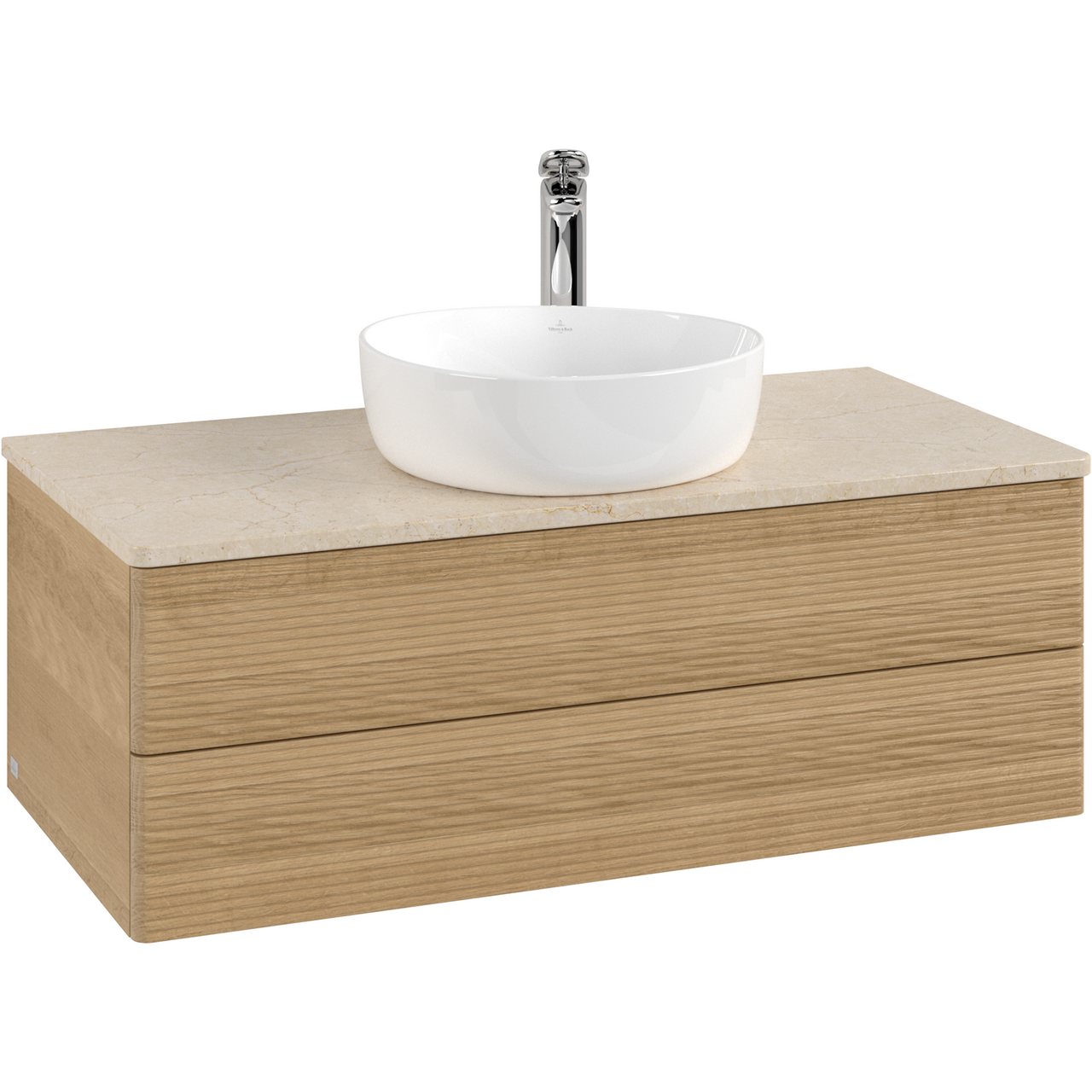 V&b antao servantskap 2 skuffer rillet 1000x360x500 m/kranhull m/lys eik/créme