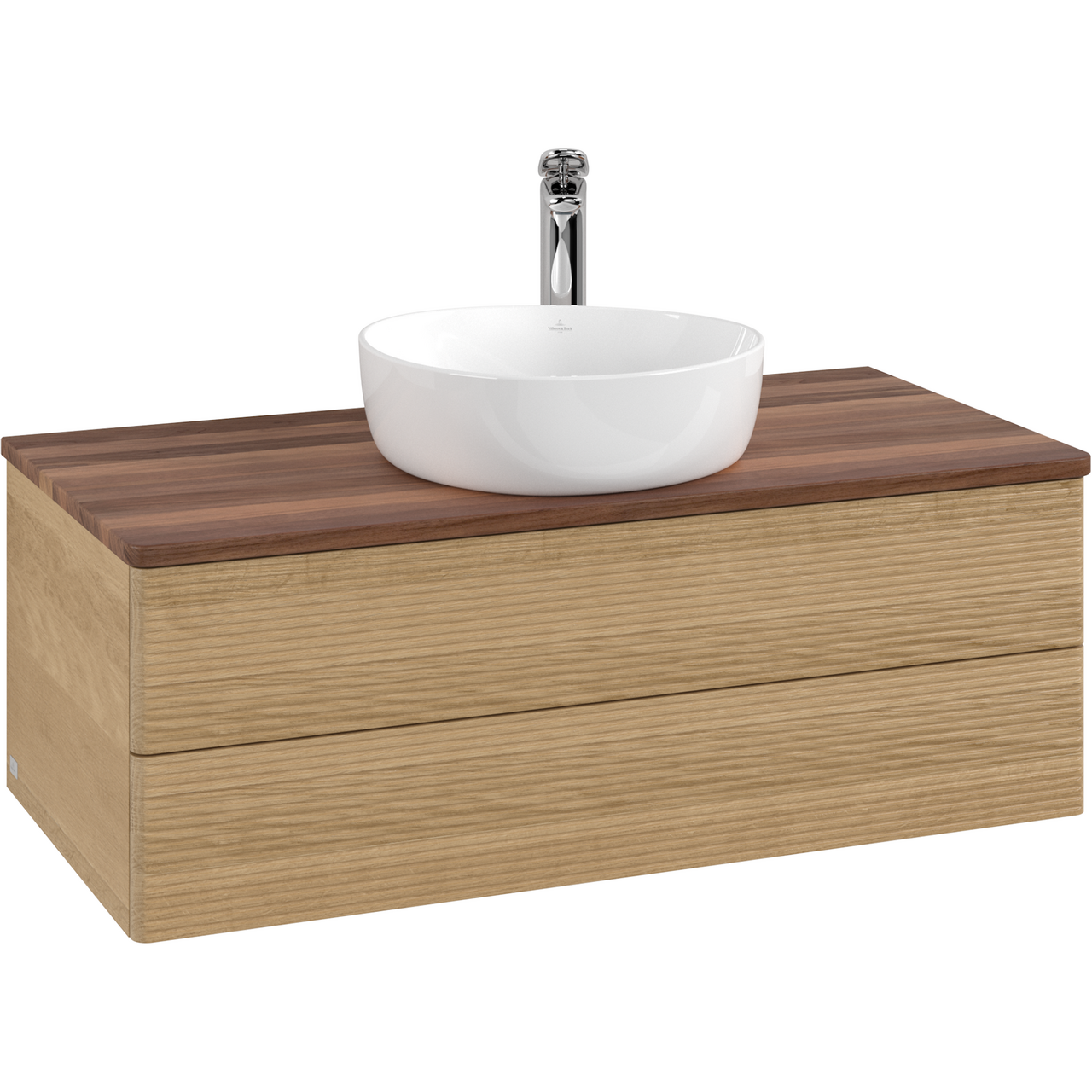 V&b antao servantskap 2 skuffer rillet 1000x360x500 m/kranhull m/lys eik/valnøtt