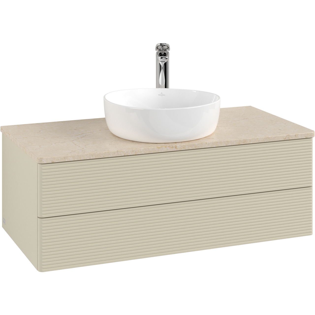 V&b antao servantskap 2 skuffer rillet 1000x360x500 m/kranhull m/lys silkegrå/créme