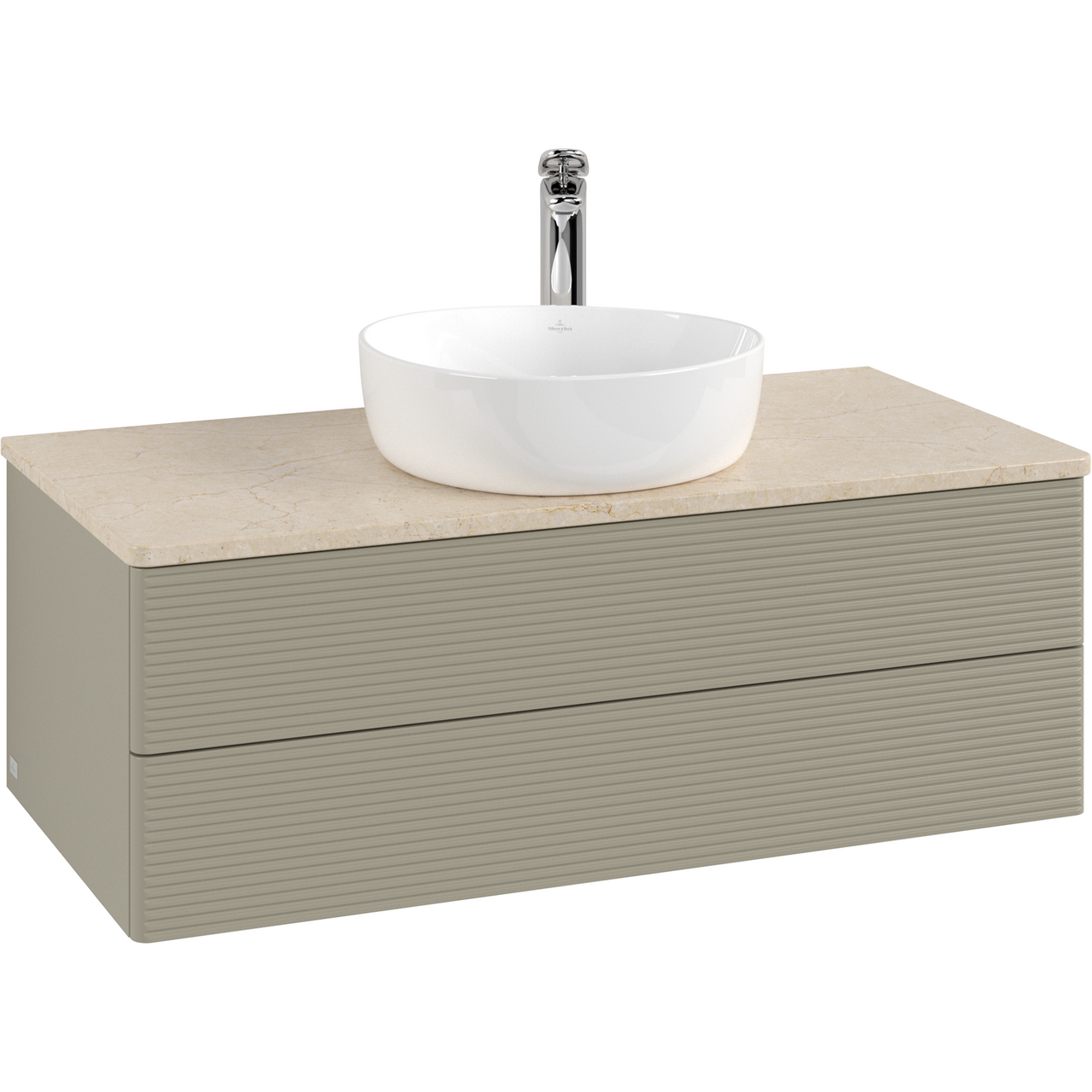 V&b antao servantskap 2 skuffer rillet 1000x360x500 m/kranhull m/lys stengrå/créme