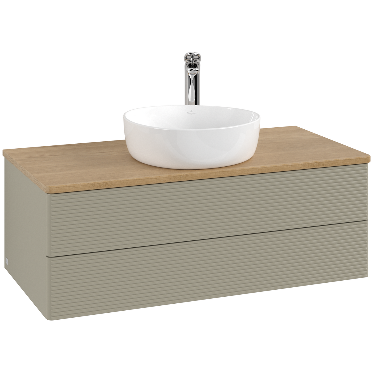 V&b antao servantskap 2 skuffer rillet 1000x360x500 m/kranhull stengrå/eik