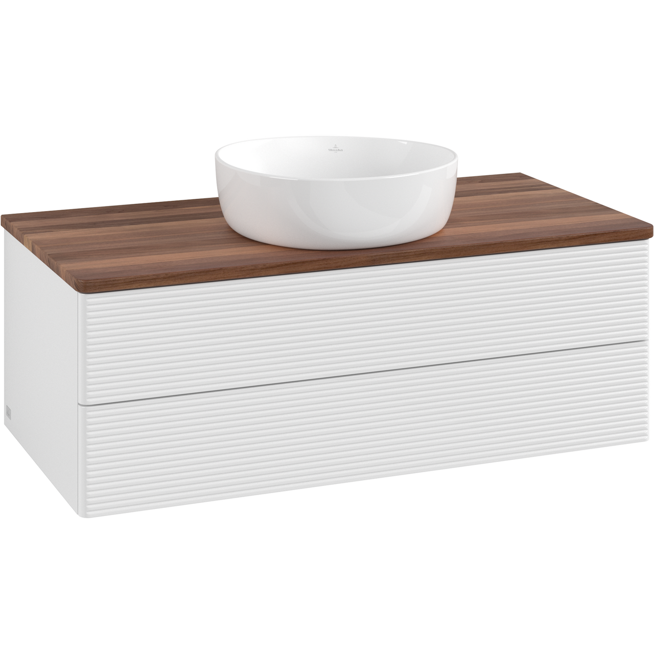 V&b antao servantskap 2 skuffer rillet 1000x360x500 u/kranhull m/lys hvit/valnøtt