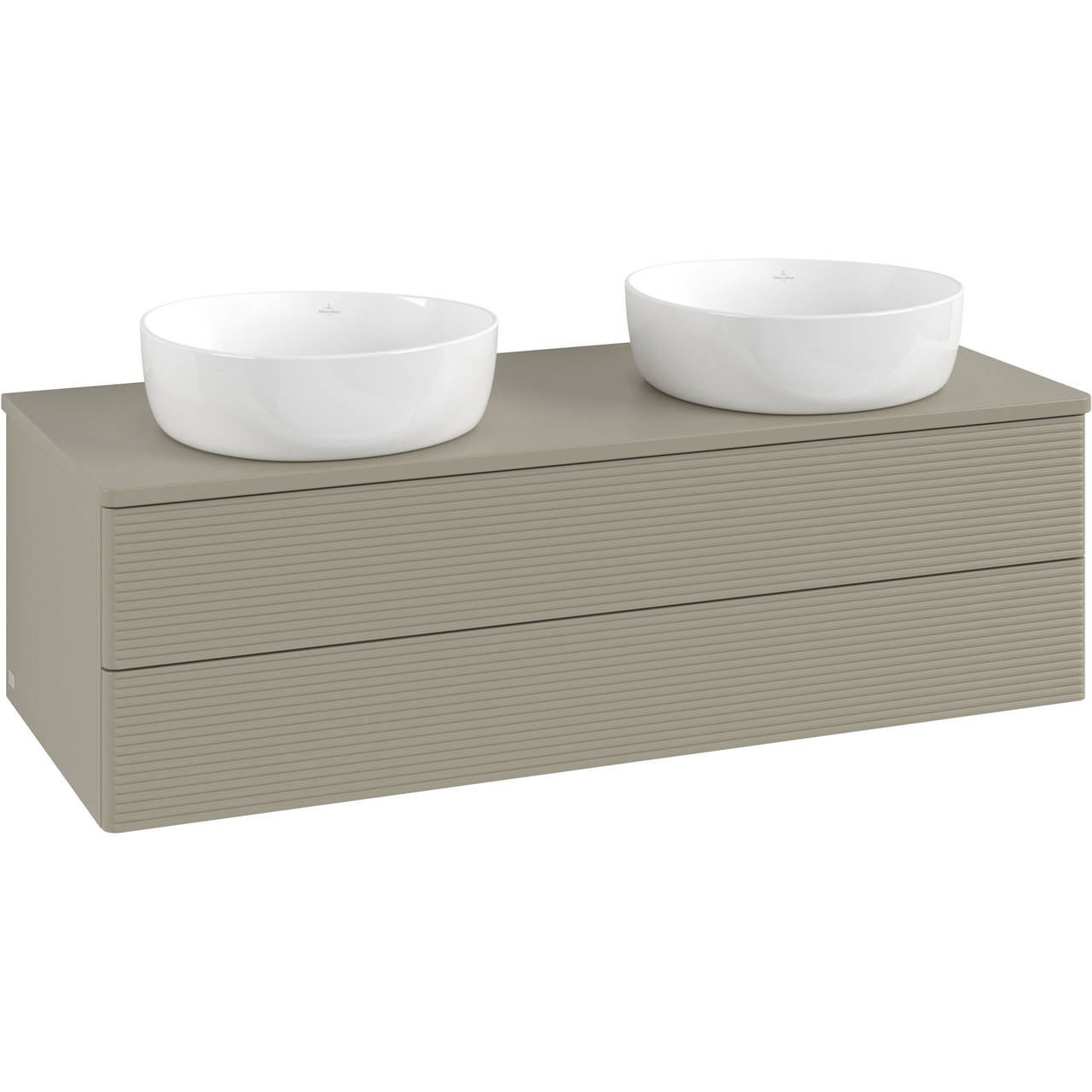 V&b antao servantskap 2 skuffer rillet 1200x360x500 for 2 serv. m/kranhull m/lys stengrå