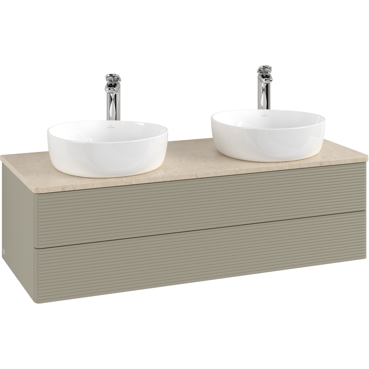 V&b antao servantskap 2 skuffer rillet 1200x360x500 for 2 serv. m/kranhull m/lys stengrå/créme