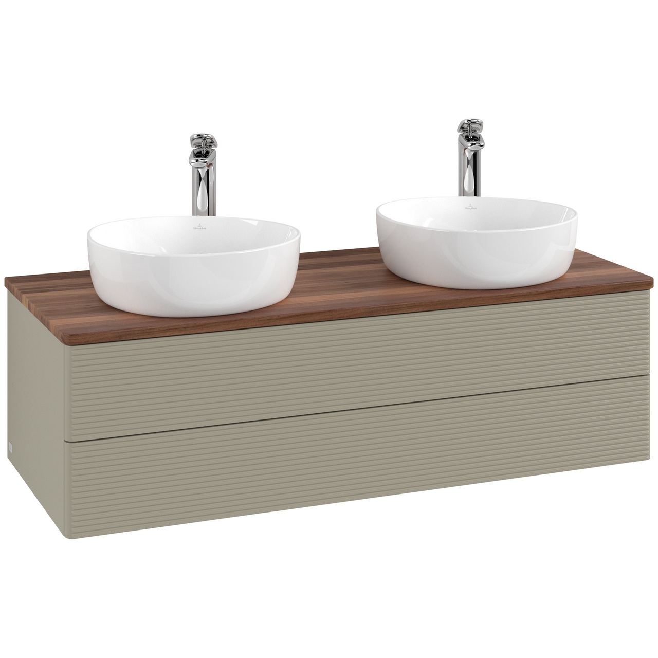 V&b antao servantskap 2 skuffer rillet 1200x360x500 for 2 serv. m/kranhull stengrå/valnøtt