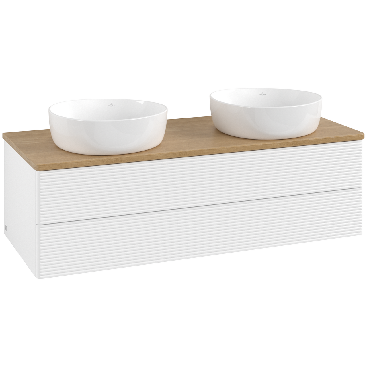 V&B ANTAO SERVANTSKAP 2 SKUFFER RILLET 1200X360X500 FOR 2 SERV. U/KRANHULL MATT HVIT/EIK