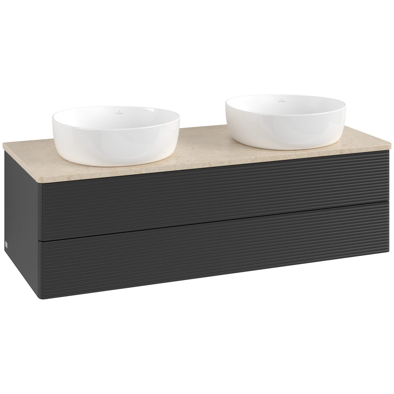 V&B ANTAO SERVANTSKAP 2 SKUFFER RILLET 1200X360X500 FOR 2 SERV. U/KRANHULL MATT SORT/CRÉME